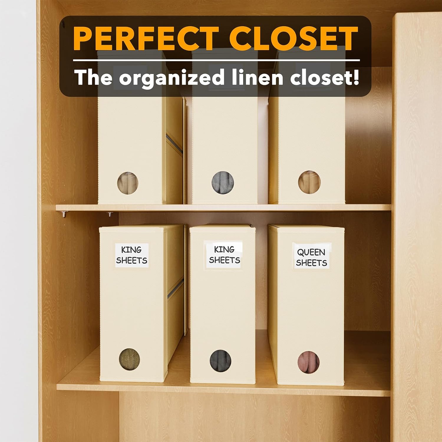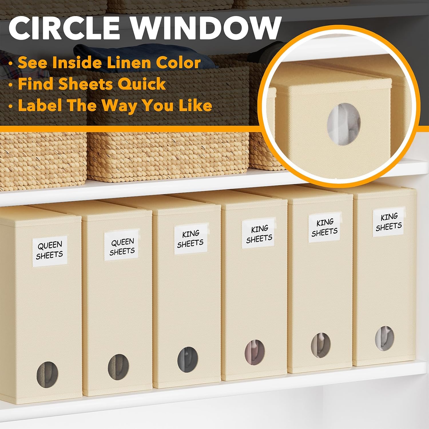 - BEIGE SHEET ORGANIZERS 6 PACK - Make your linen closet organized and beautiful with this foldable bed sheet fabric organizer; Each Storage Organizer SIZE: 5"W x 15"D x 12.8"H