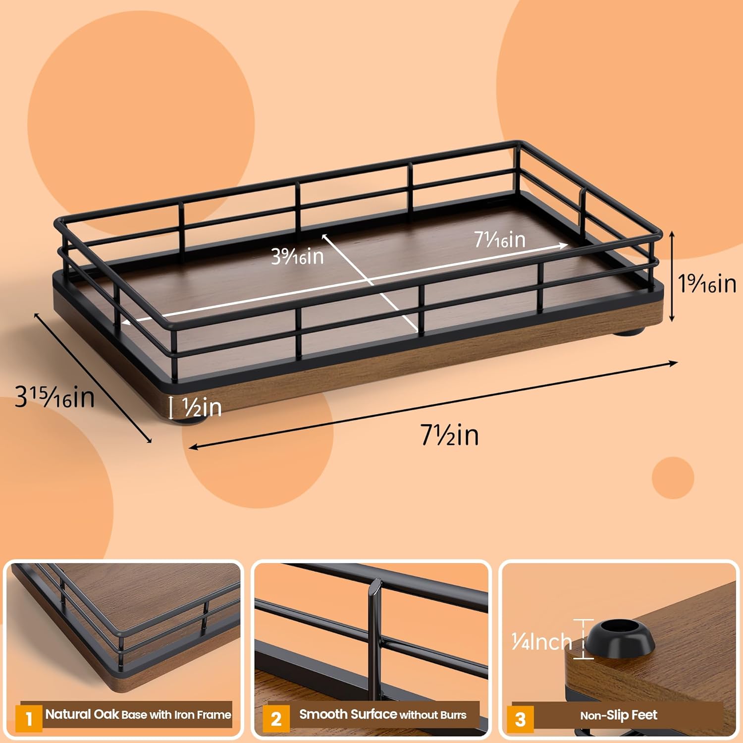 - Versatile Functionality: Elevate your daily routine with our tray for bathroom counter; Neatly arrange bathroom essentials like mouthwash with cups, toothbrushes, cotton swab, keeping your countertop tidy; Add a touch of elegance to your dresser by using the vanity tray to showcase perfumes, jewelry, and candles; The small tray can also be used to store keys, watches and change at the entrance