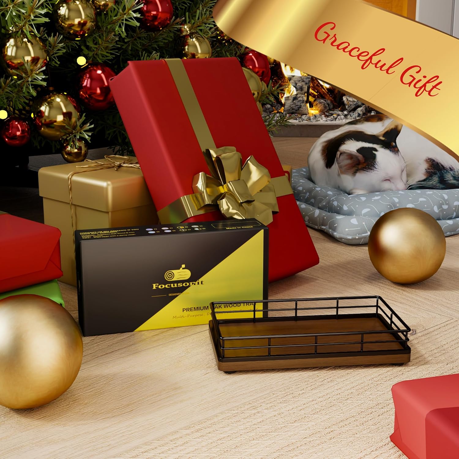 - Unique Charm: Elevate your space with a unique appearance featuring a combination of iron mesh edges and solid oak base; Oak's distinctive and captivating grain pattern adds natural beauty, giving an exquisite touch of elegance and sophistication; This fusion blends modern minimalism with rustic charm seamlessly; This wood rectangle tray is crafted from high-quality oak, which ensures durability and increased load-bearing capacity