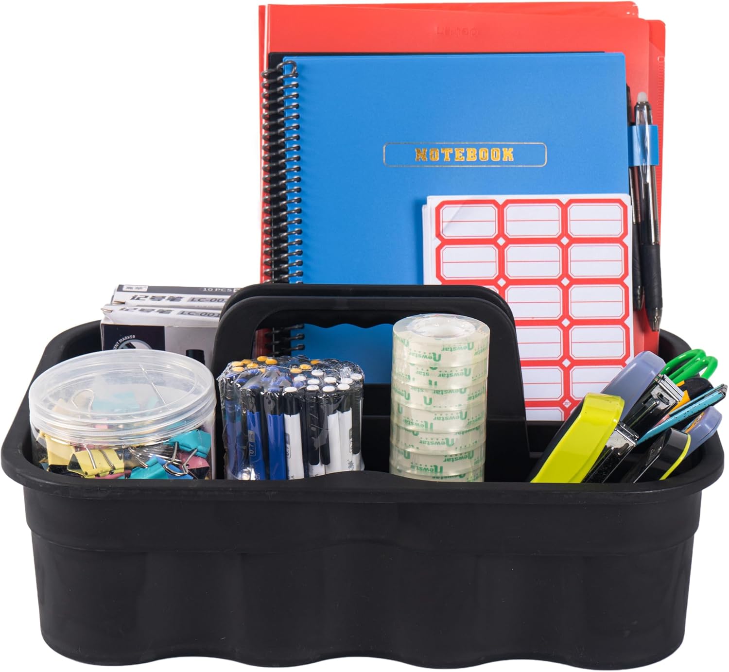 Matthew 5 Pack Large Plastic Tote Tool & Deluxe Supply Cleaning Caddy with Handle Portable Shower Basket Storage Caddy for Cleaning Products,Take-Out Drink,Bathrooms - Black