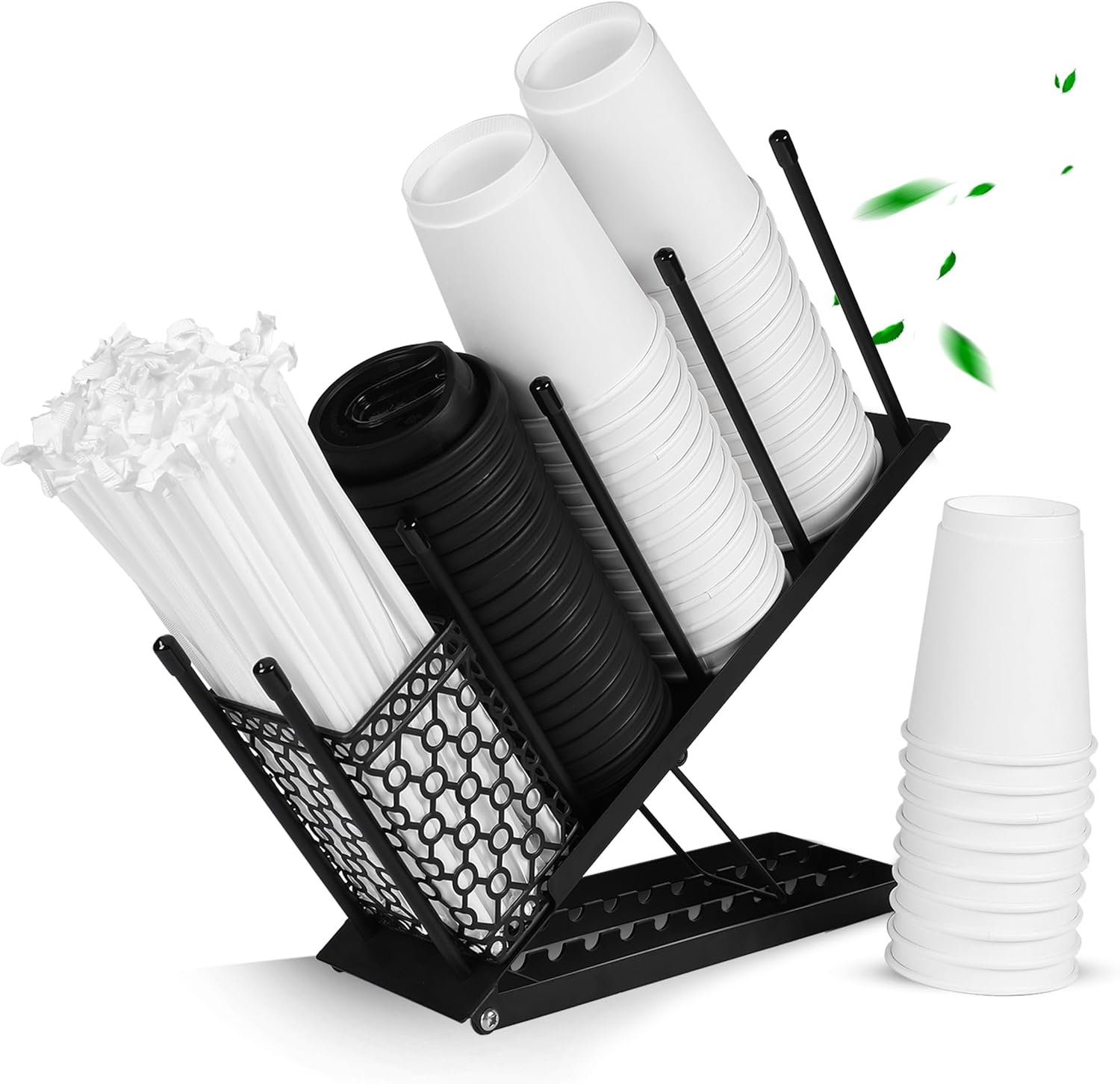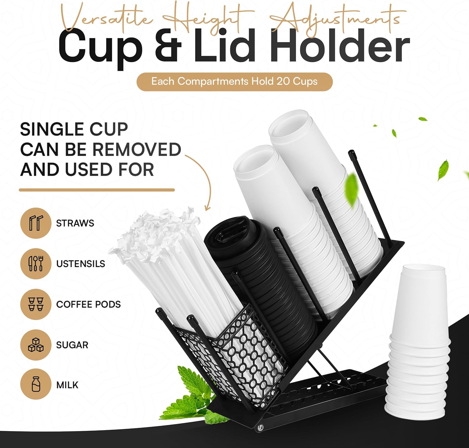 - Space-Saving Coffee Cup Lid Organizer - This compact 11.5x4.5x15" restaurant paper cup holder fits neatly on any counter without occupying much space, ideal for both small and large environments. Providing an all-in-one cup and lid holder adjustable design.