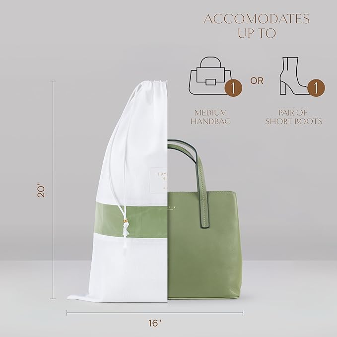 Hayden Hill Luxury Organic Cotton Dust Bags For Handbags - 3 Pack Medium - 20" Purse Storage, Shoe Bags and Handbag Organizer For Closet - Certified Carbon Neutral