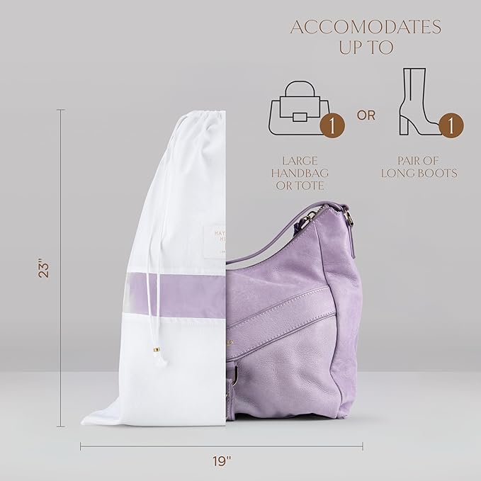 Hayden Hill Luxury Organic Cotton Dust Bags For Handbags - 3 Pack Large - 23" Purse Dust Bags, Shoe Bags and Handbag Covers For Storage - Carbon Neutral Protector Dustbags