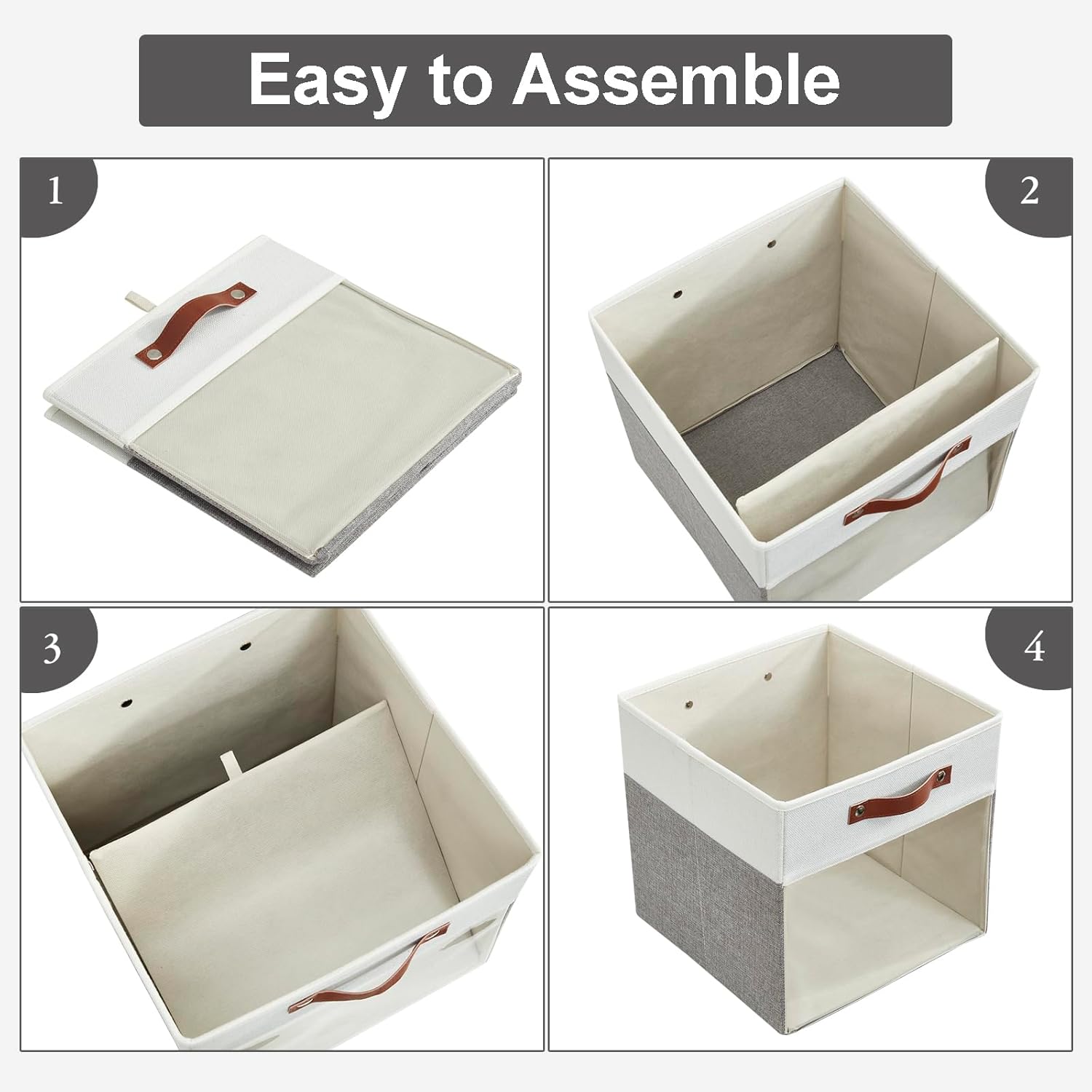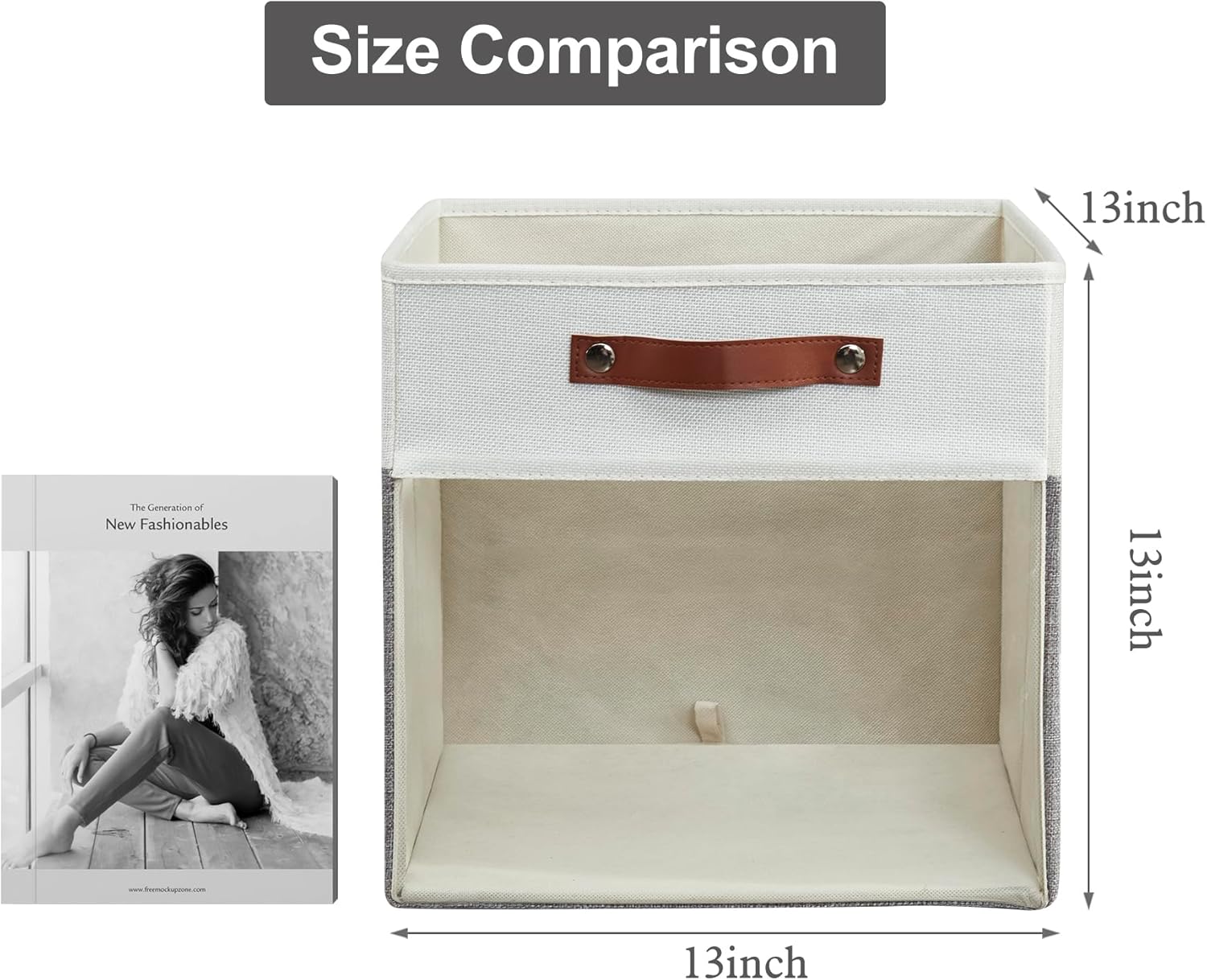 - [Exquisite Details] The handles of the storage cubes are made of soft leather, durable and classical. 2.5mm high quality cardboard on the sides and bottom help the storage bins keep firm and unbending. The heavy cardboard on the bottom is sewn together with the bottom fabric so you will not lose or forget it when you fold up the cubes.