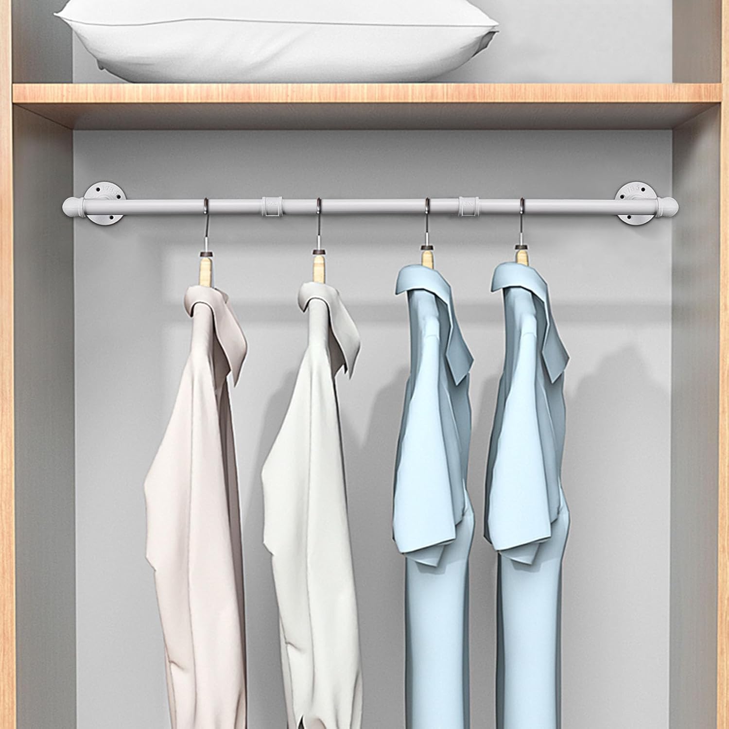 - Multiple Functions: The pipe wall clothes rack is easy to match with various décor styles to keep your garments always organized and tidy. It is suitable for anywhere, such as bedroom, bathroom, living room, balcony, wardrobe and so on