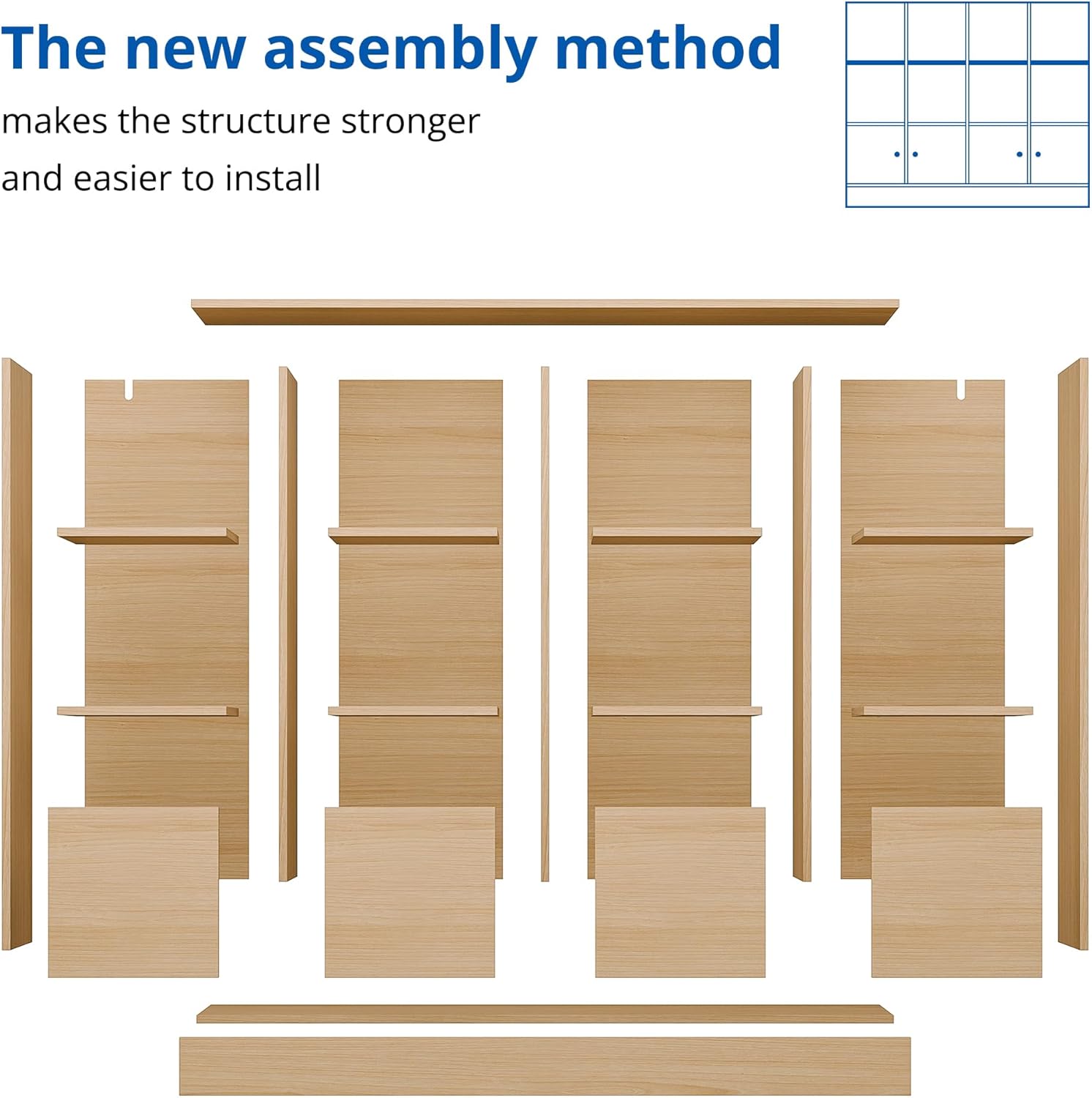 Cozy Castle Oak Wood Bookcase, 12 Cube Storage Organizer Shelf with 4 Doors, 3 Tier Storage Cabinet with Anti-Tilt Device for Bedroom, Living Room, Office