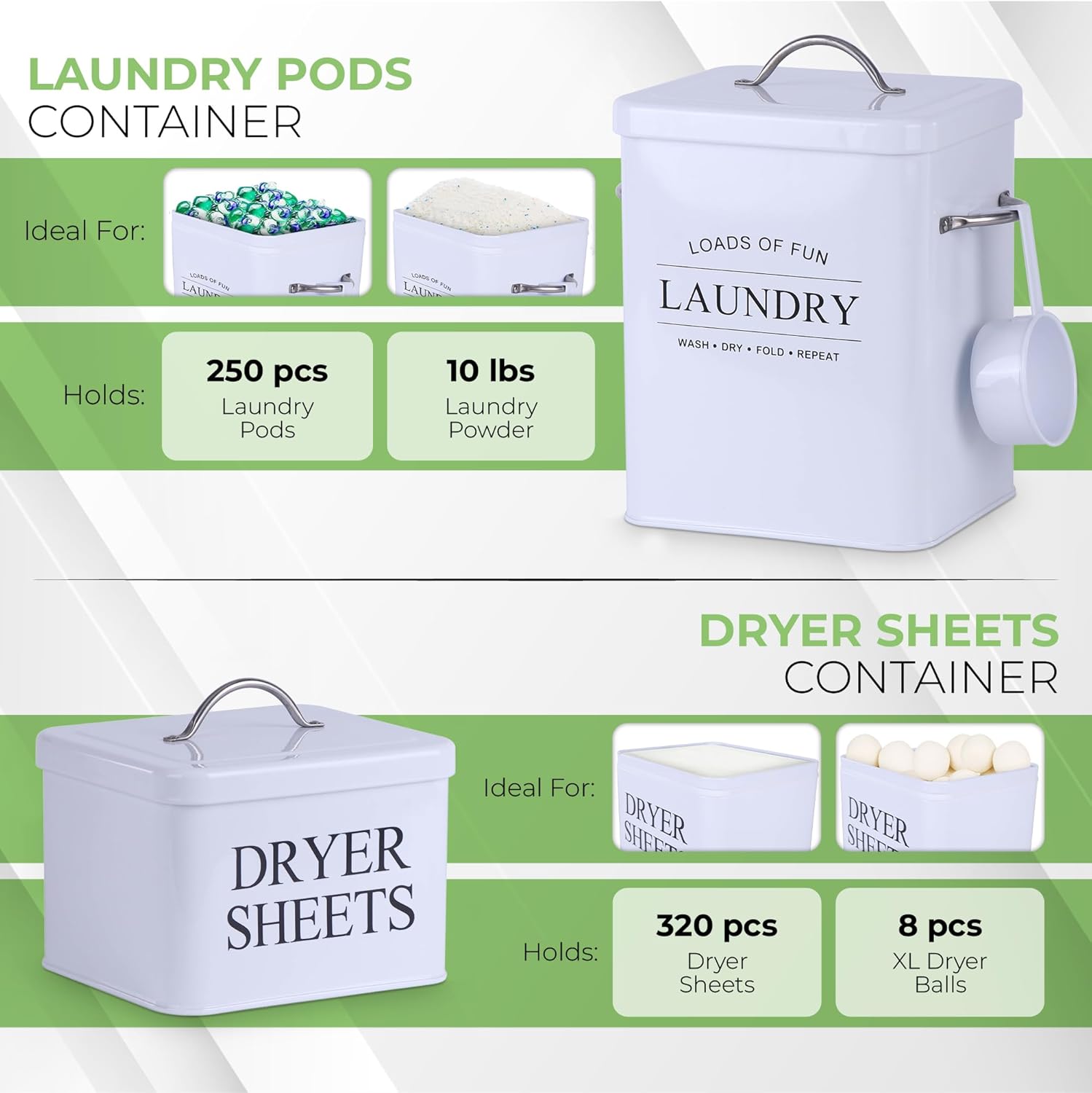 - Streamlined Laundry Experience: Simplify your washing routine with our laundry pods container and dryer sheet dispenser—smart organizers that cut clutter and elevate your laundry room decor.