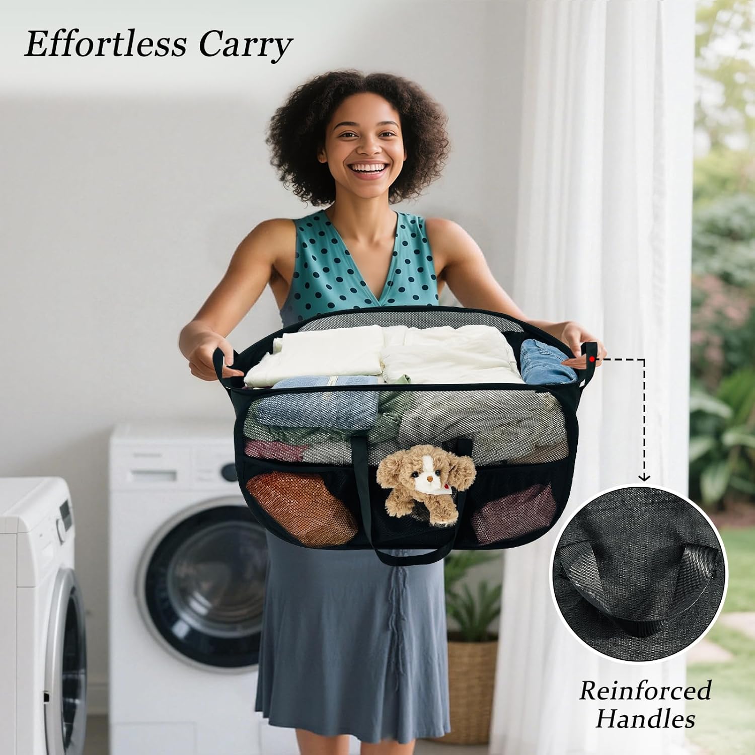 - ๐๐๐๐ซ๐ฌ๐๐ญ๐ข๐ฅ๐ ๐๐จ๐ง๐๐๐ซ: Discover the versatility of the mesh laundry basket that can transform into a stair basket or a portable storage haven for toys and clothes. It effortlessly blends into various settings such as homes, camps, RVs, dorms, and hotels, charming with seamless integration