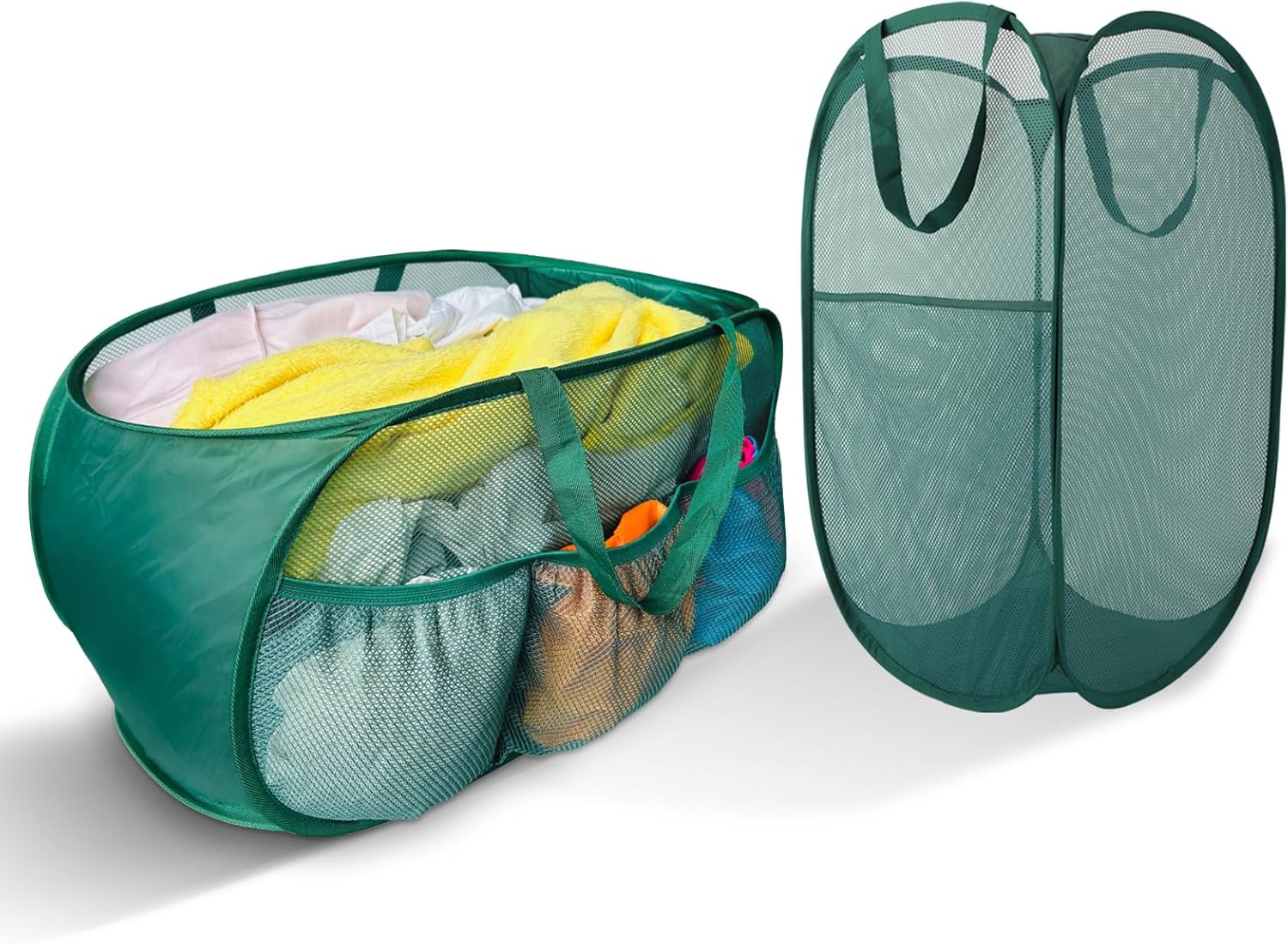 Collapsible Laundry Basket 2 pack, Mesh Pop Up Laundry Hampers with Handles, Anti-tear, Light Breathable, Odor-free, Fold Compact, Large Hold Portable Travel Laundry Bag for Home Bin, Green. H+V