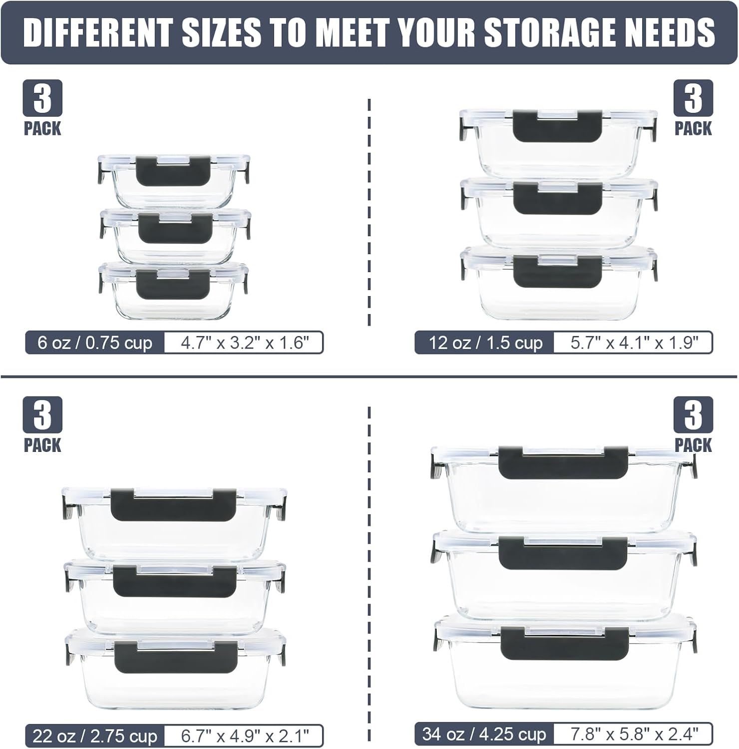 12 Pack Glass Food Storage Containers, Glass Storage Containers with Lids for Meal Prep, Lunch, Airtight, Freezer to Microwave Safe (12 Lids & 12 Containers)