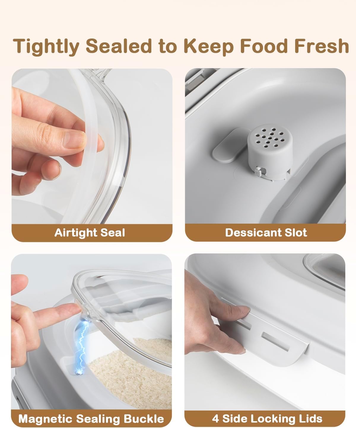 - Superior Sealing for Freshness: Our pet food storage container is designed with a double airtight seal and 4 side locking lids, ensures your pet's food stays fresh longer, free from moisture