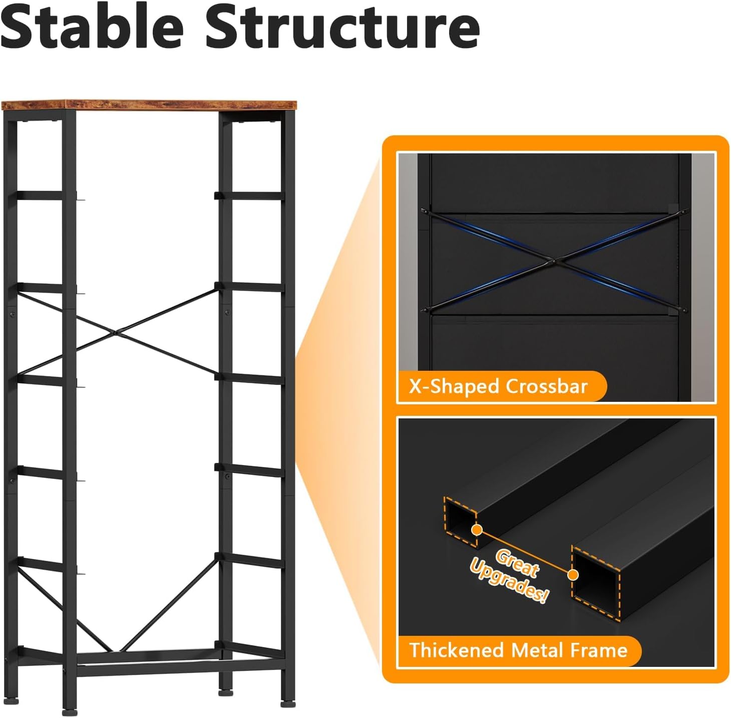 - 【Reinforced and Sturdy End Table】Our clothing storage stands out with its sturdy construction, featuring a reinforced metal frame. The back of the bedside table is equiped with more reinforced X-type crossbar, which offers high strength support and ensure years of use. Adjustable feet can adapt to uneven ground, will make it more stable.