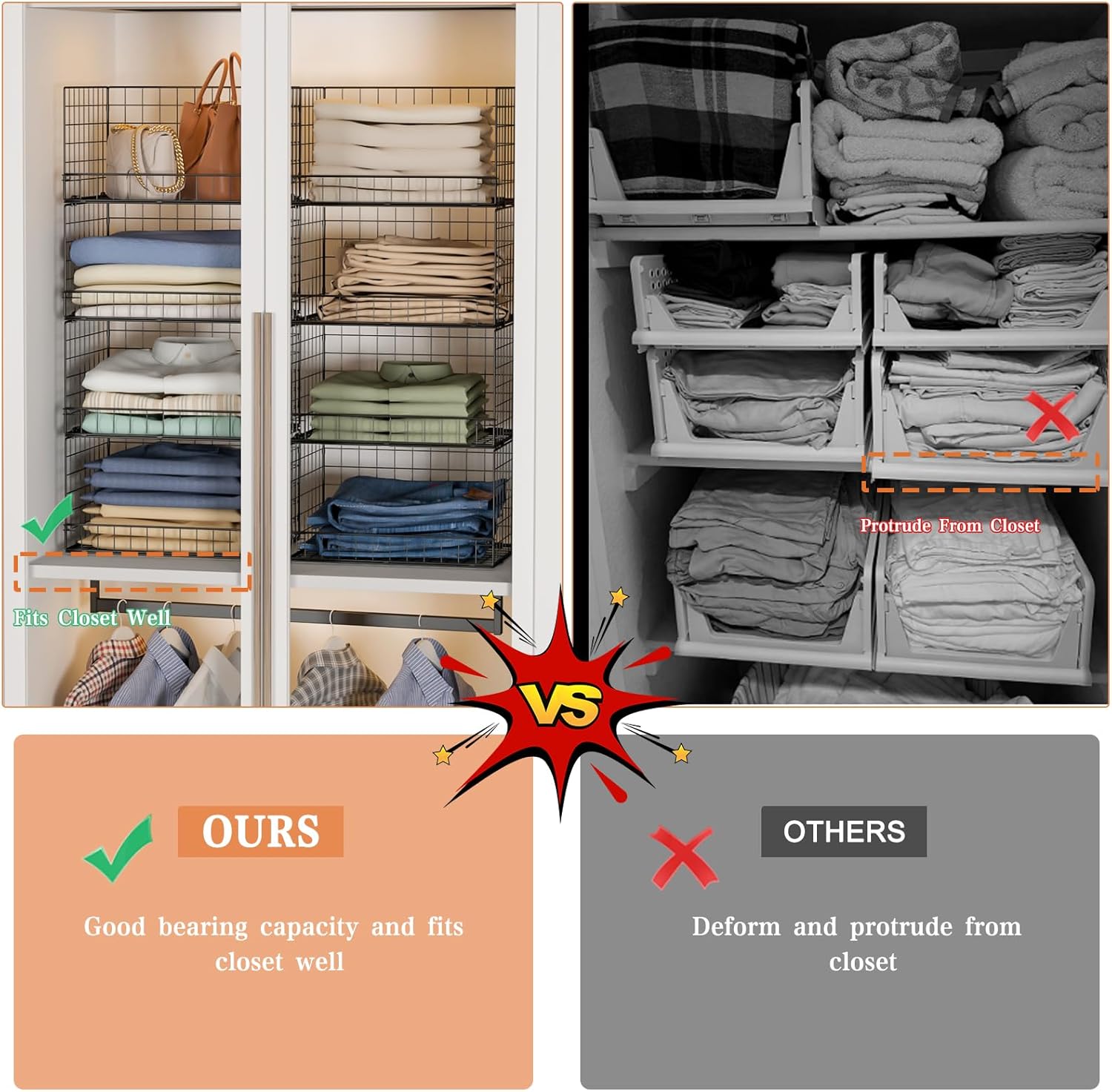 - 【Sturdy Iron Mesh】Made of premium iron mesh,these closet storage bins are sturdy,durable,breathable,visible,no smell and washable.Would not bend or damage like plastic or cloth storage baskets. You can count on it is strong enough and has a good craft.