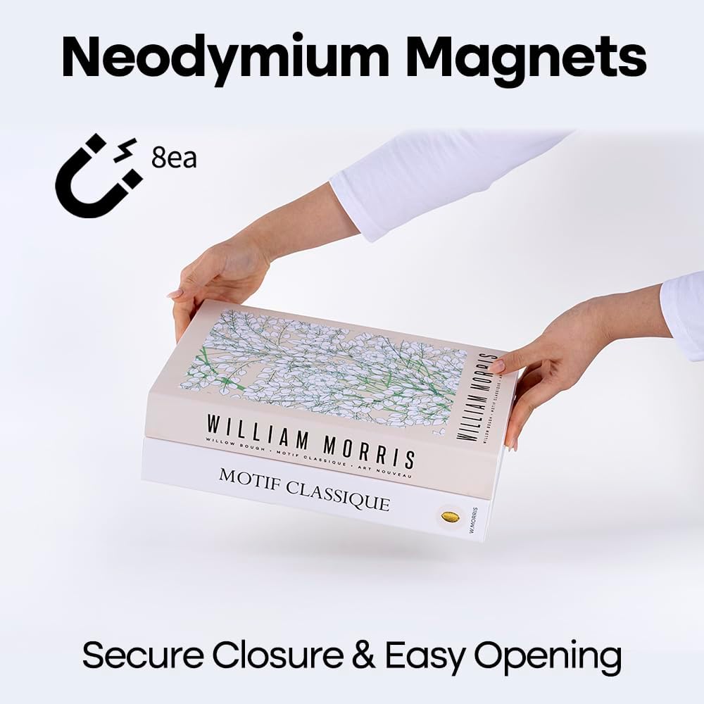 Book Shape Decorative Cable Management Box - Expandable Cable Organizer Box with Magnetic Closure for Home & Office (William Morris, Large)