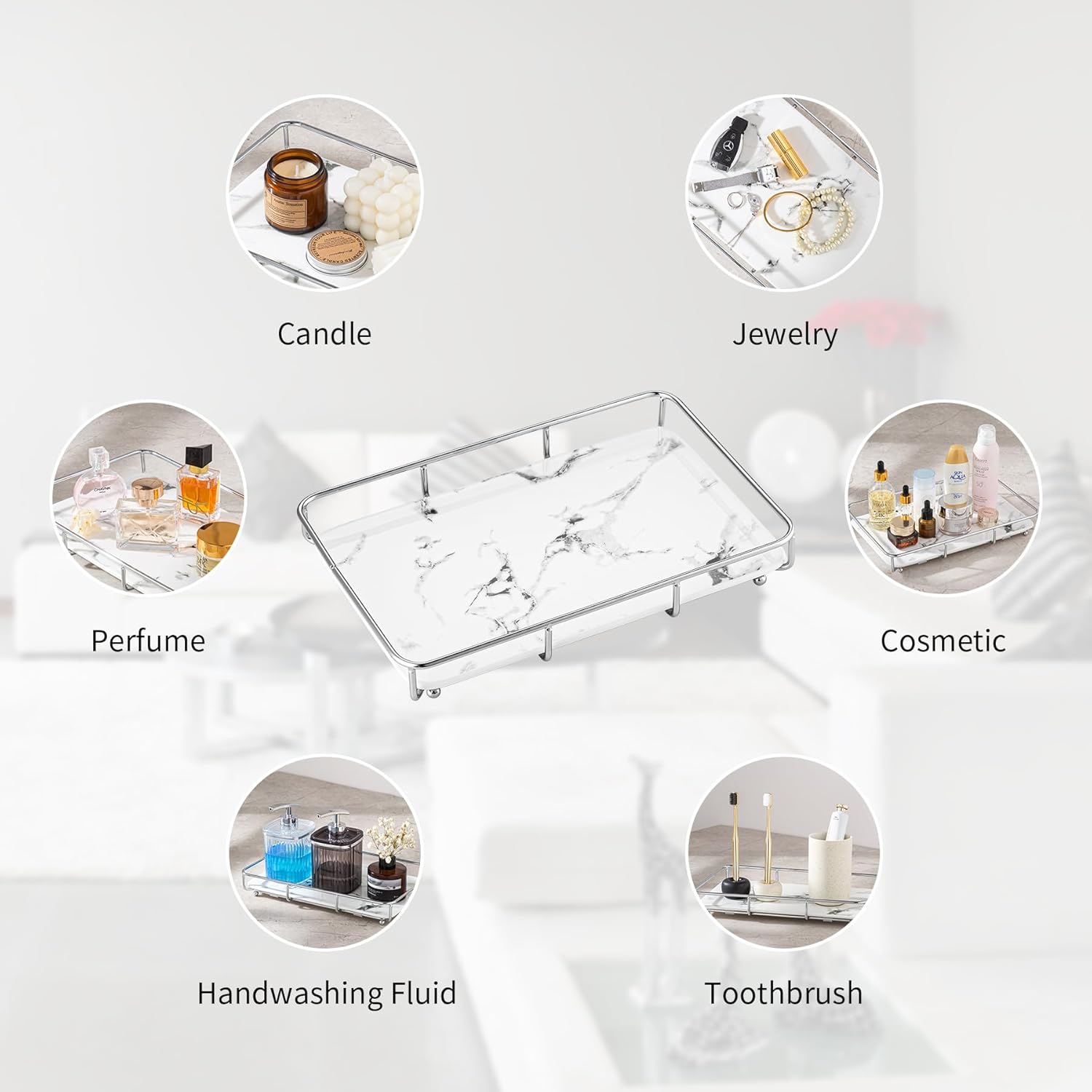 - Multi-Purpose Vanity Tray Organizer: Perfect for enhancing dresser, desk, or countertop. Can be used in various rooms such as bathroom, bedroom, living room, kitchen, office, or balcony.