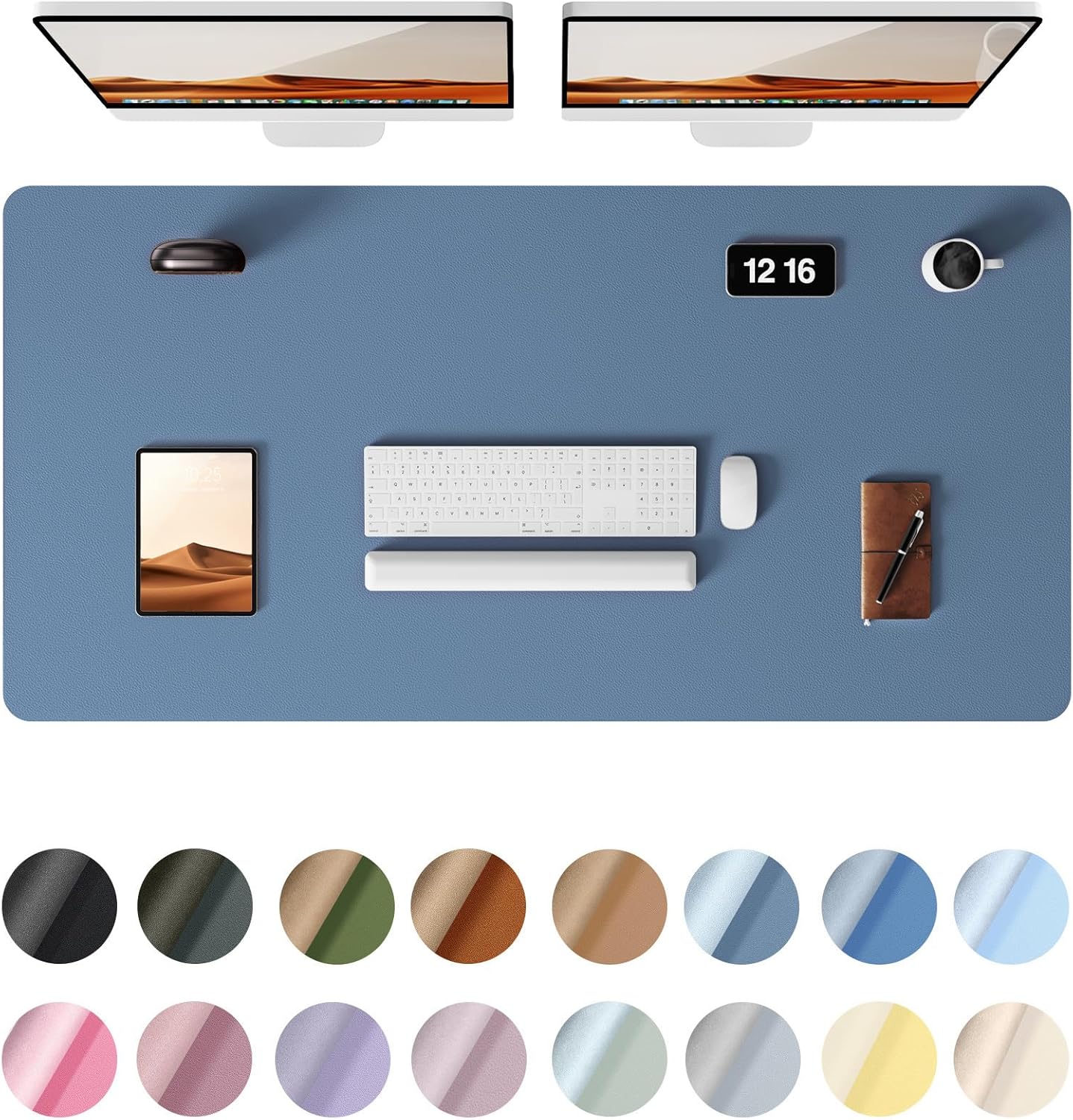 YSAGi Leather Desk Protector, Office Mat, Large Mouse Mat, Non-Slip PU Leather Blotter, Laptop Desk Pad, Waterproof Writing Pad for Office and Home (Blue, 47.2" x 23.6")