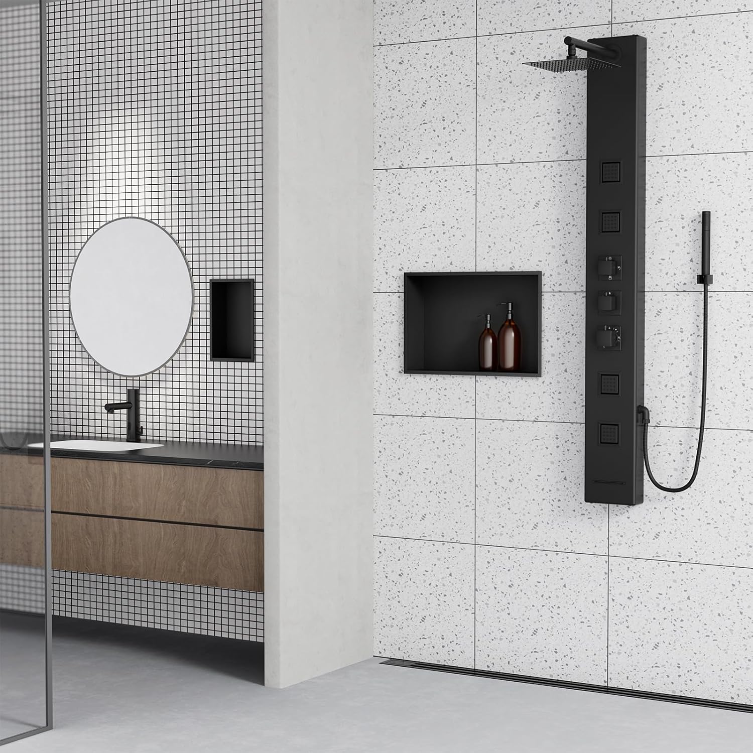 - 【MODERN APPEARANCE】 Stainless steel shower niche with matte black finish, in addition to its stylish and beautiful features, it is also fingerprint resistant and easy to clean. The modern and minimalist look fit any home decoration style