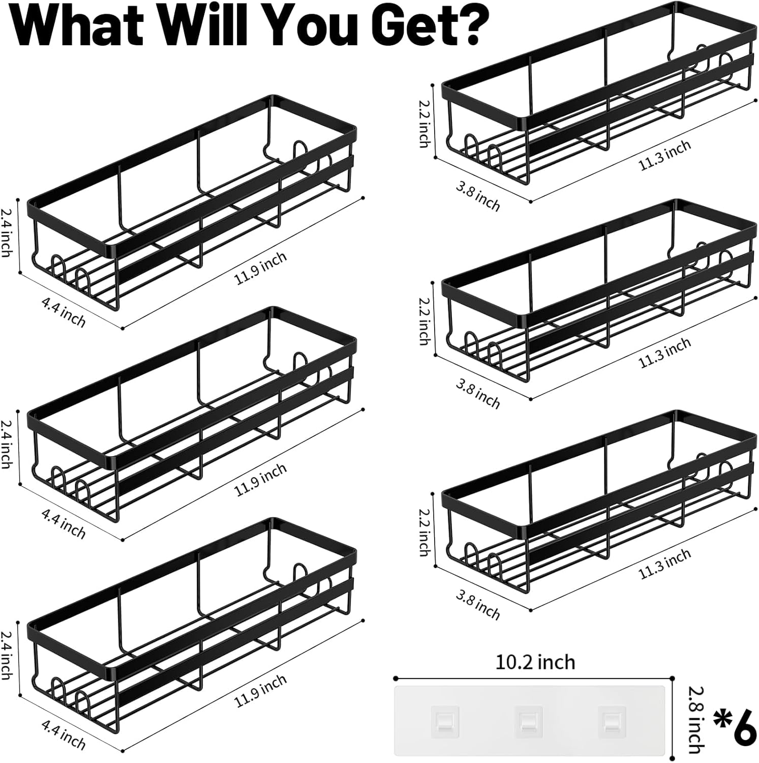 - 【What is included】6 x Shower Caddies with Hooks, 6 x Transparent Adhesive Stickers, and 1 x User Manual.
