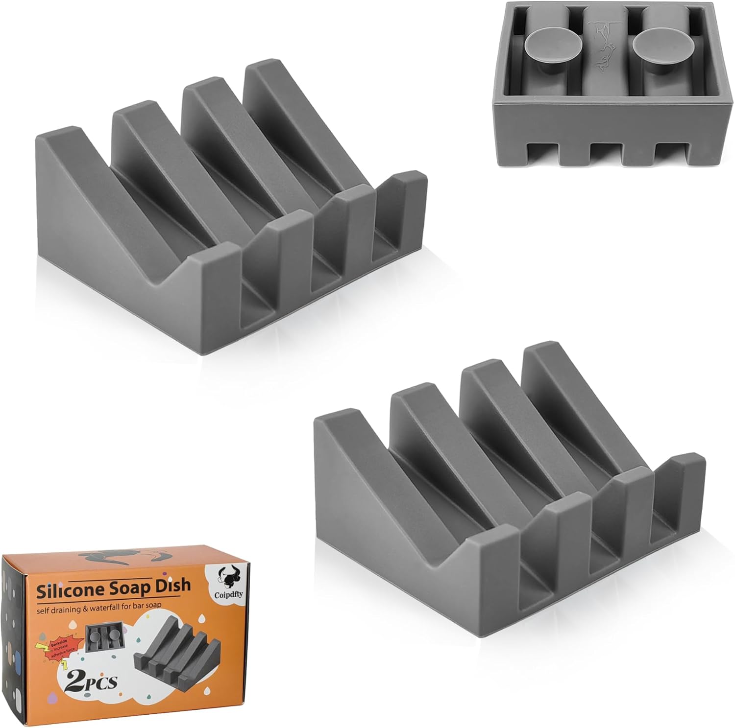 Self Draining Soap Dish,Silicone Suction Cup Soap Holder, Bathroom Soap Dish for Bar Soap,Can Extend Soap Life,Bathroom, Bath Tub, Kitchen Sink (2, Grey)