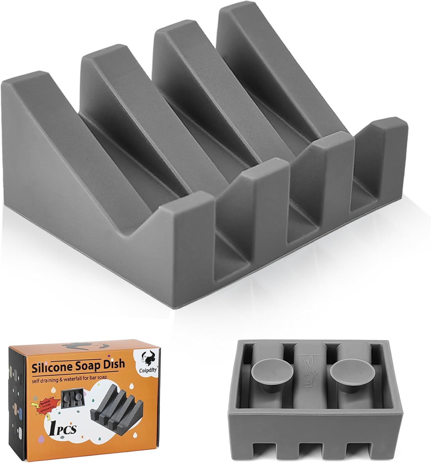 Self Draining Soap Dish,Silicone Suction Cup Soap Holder, Bathroom Soap Dish for Bar Soap,Can Extend Soap Life,Bathroom, Bath Tub, Kitchen Sink (1, Grey)