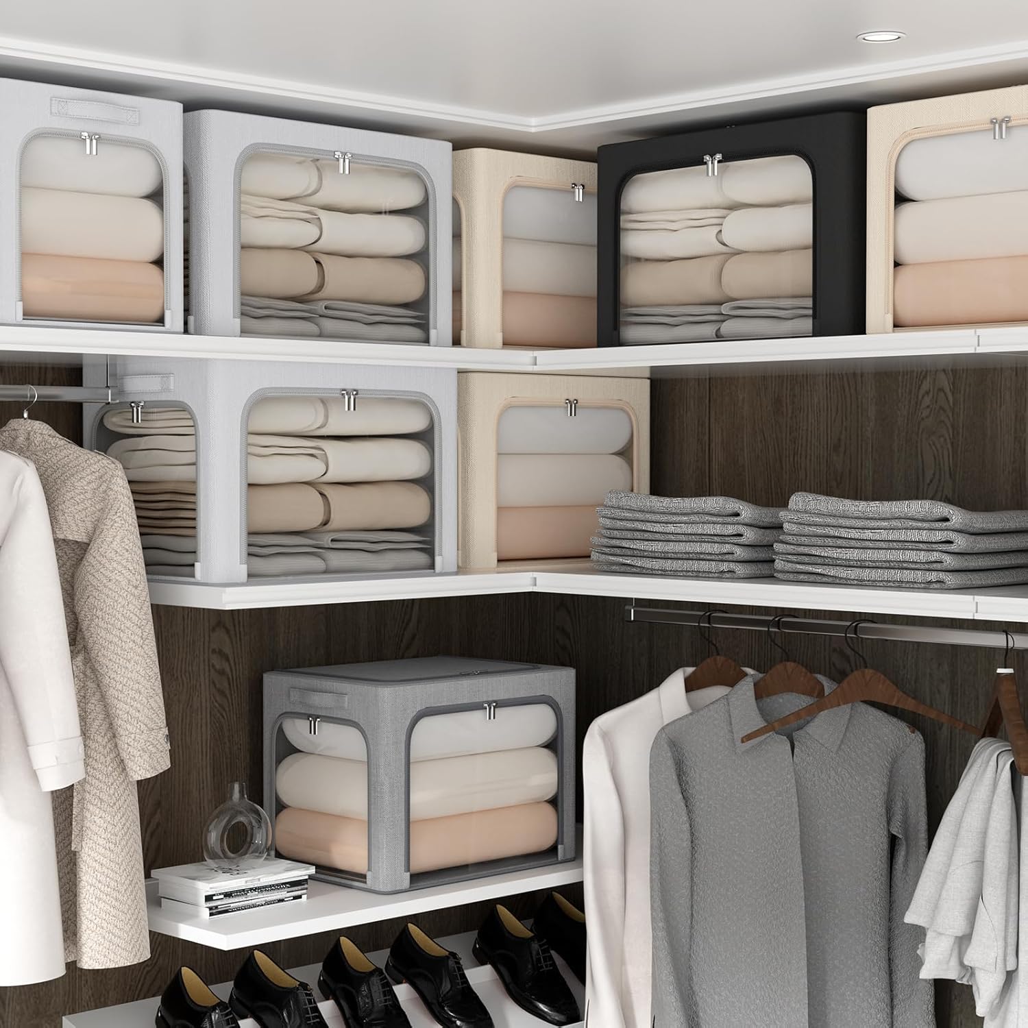 - 3Pack METAL FRAME STORAGE BOX: 3*66L Large storage space for storing a variety of things. Suitable for your seasonal clothing, bedding, blankets, comforters, other clothes, shoes, books, holiday decorations, etc. These storage organizer boxes can be placed in the bedroom, office, closet, study, attic, or other places you want.