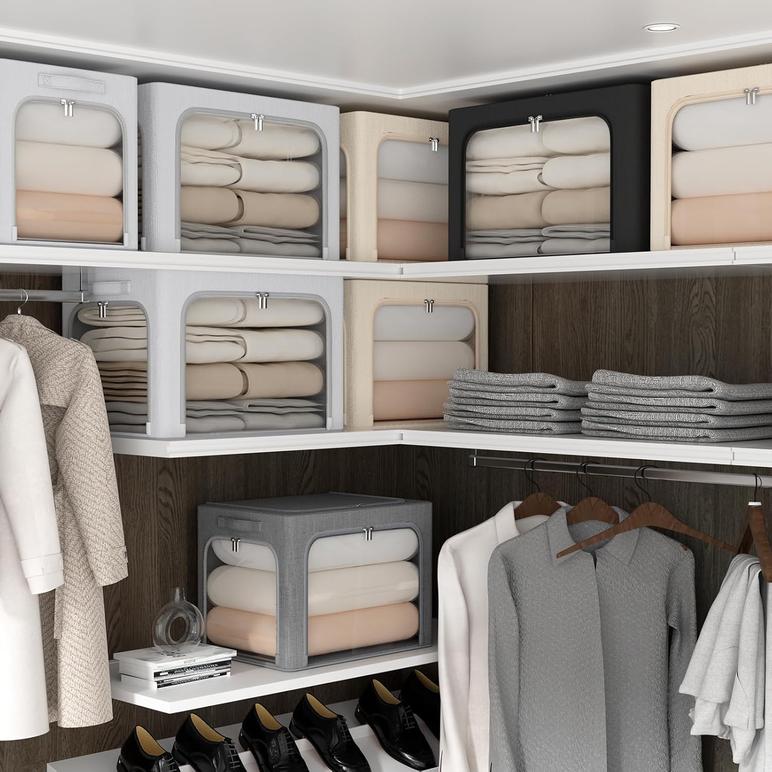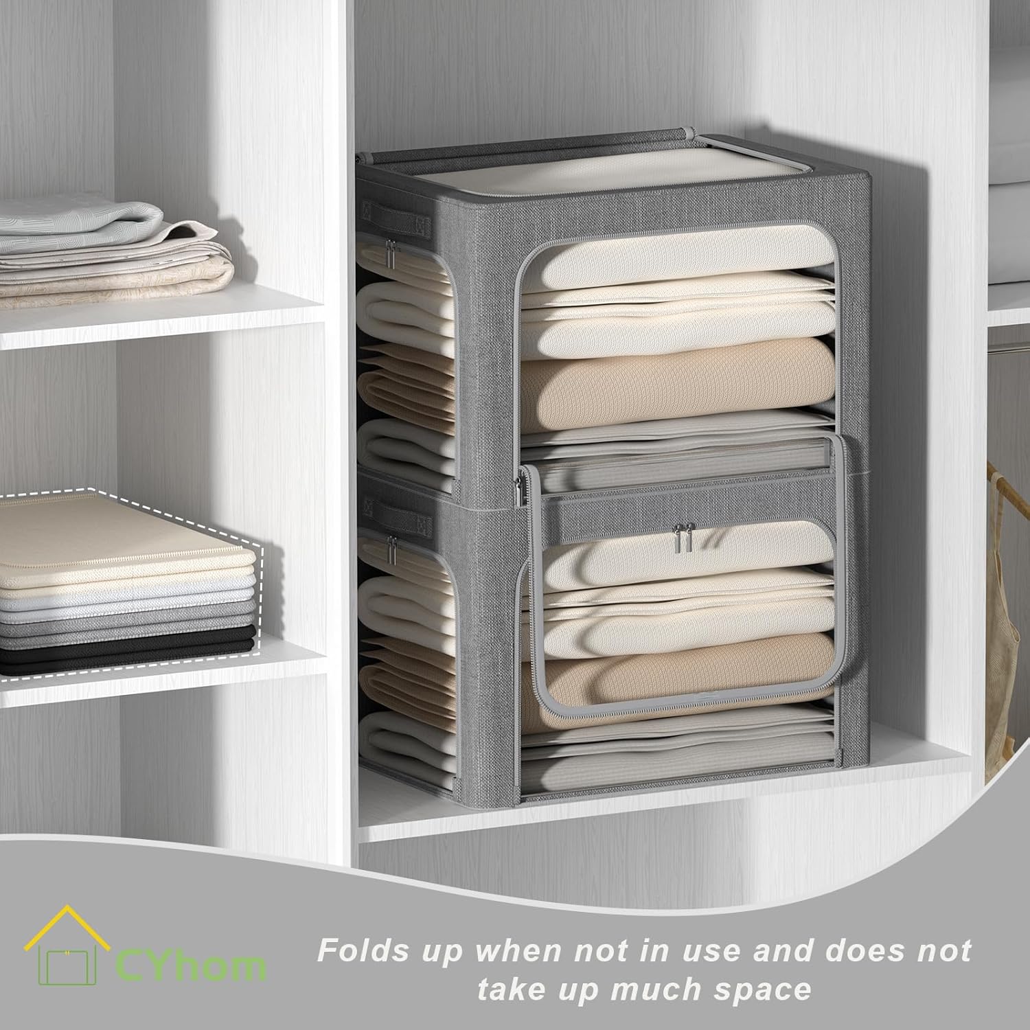 - 3Pack METAL FRAME STORAGE BOX: 3*66L Large storage space for storing a variety of things. Suitable for your seasonal clothing, bedding, blankets, comforters, other clothes, shoes, books, holiday decorations, etc. These storage organizer boxes can be placed in the bedroom, office, closet, study, attic, or other places you want.
