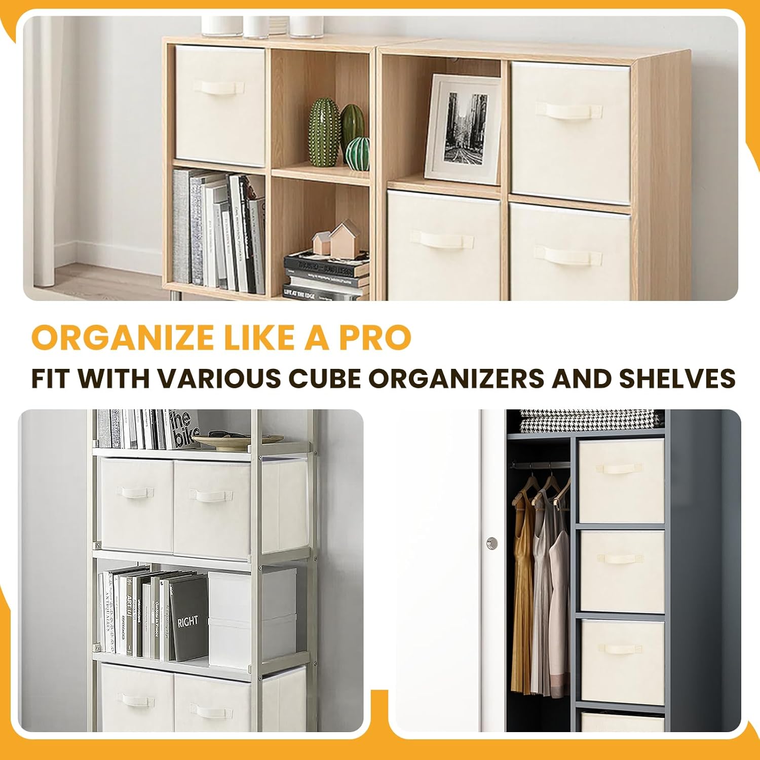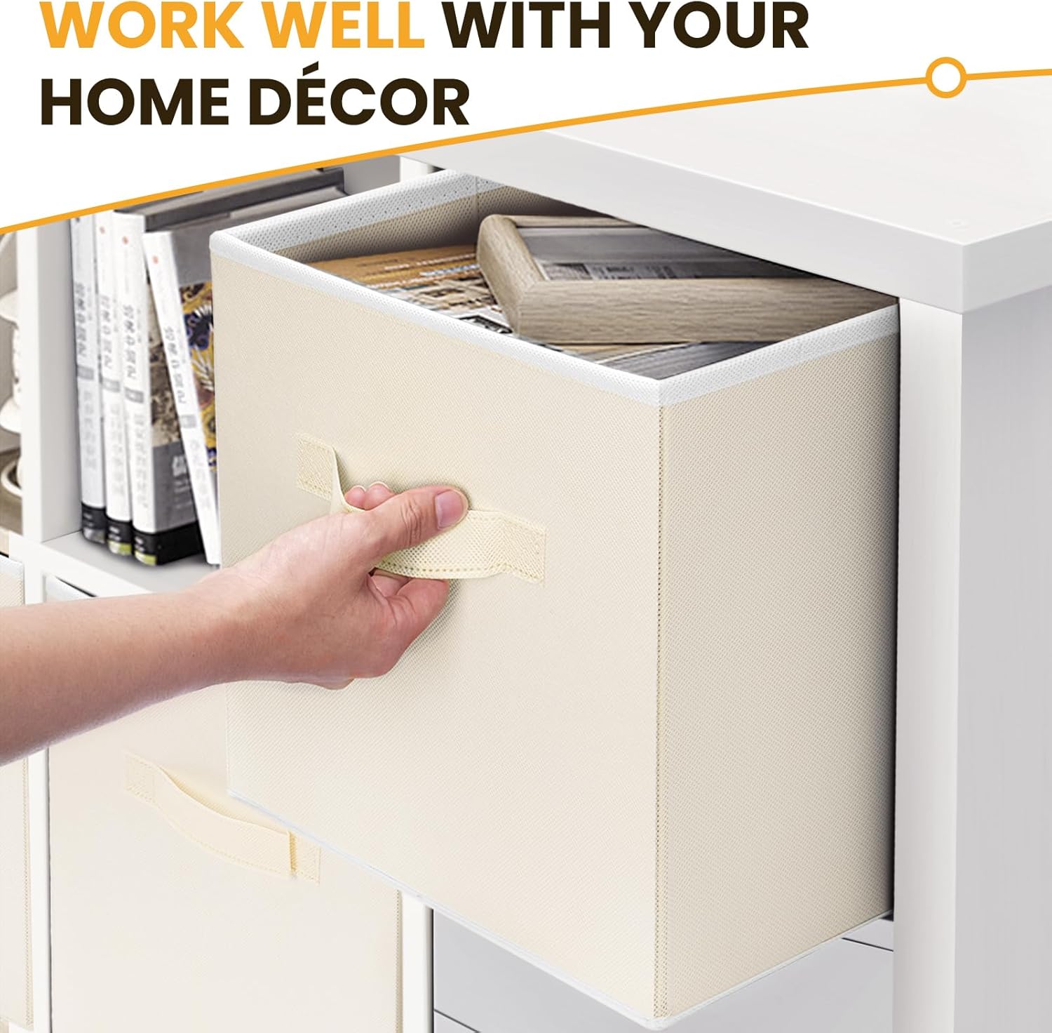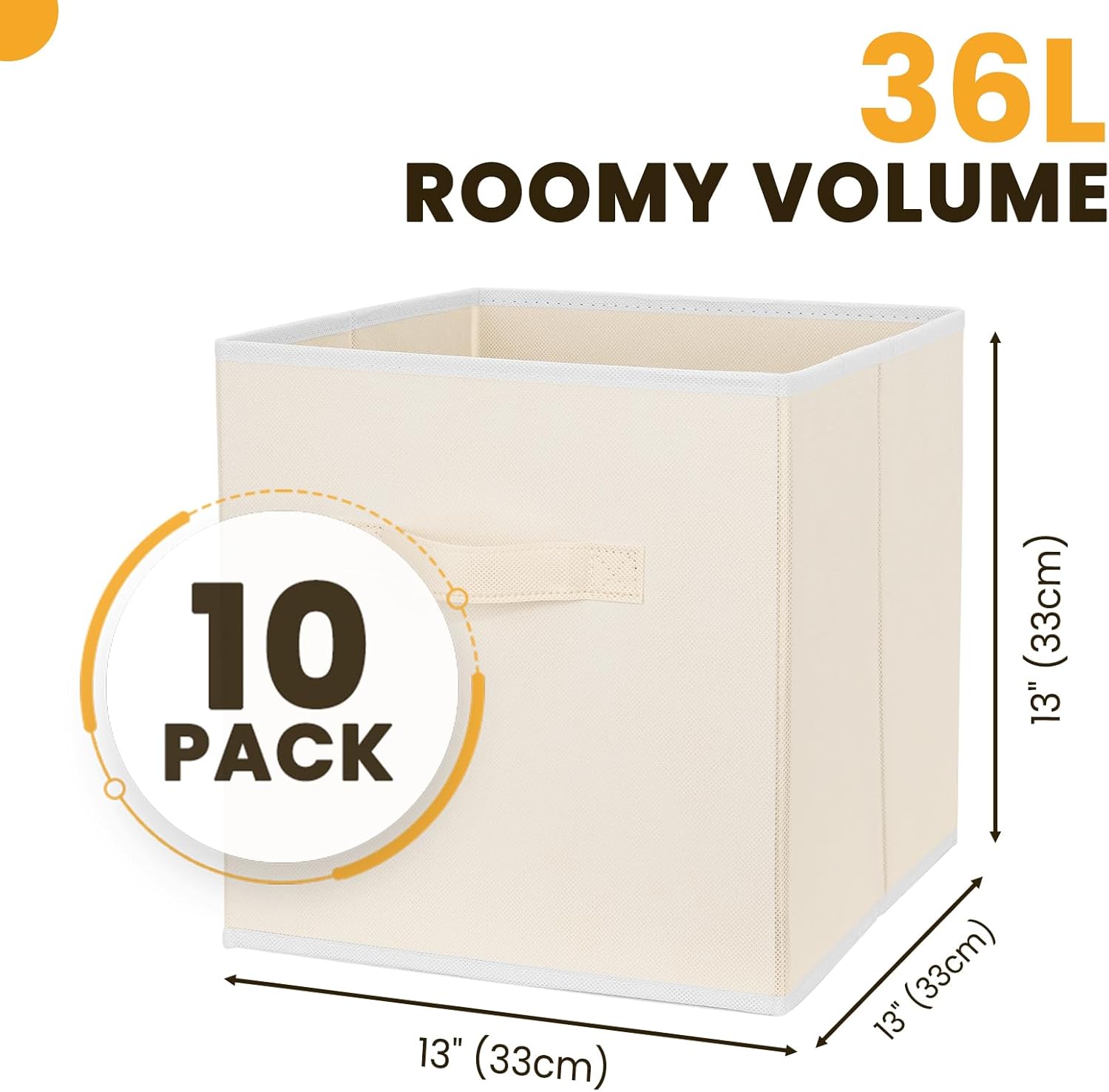Criusia Large Storage Cubes, 13 Inch Cube Storage Bins for Shelves Closet Nursery Bedroom - 10 Pack Collapsible Storage Baskets with Handles - Fabric Bins for Organizing Clothes Blanket Toys (Beige)