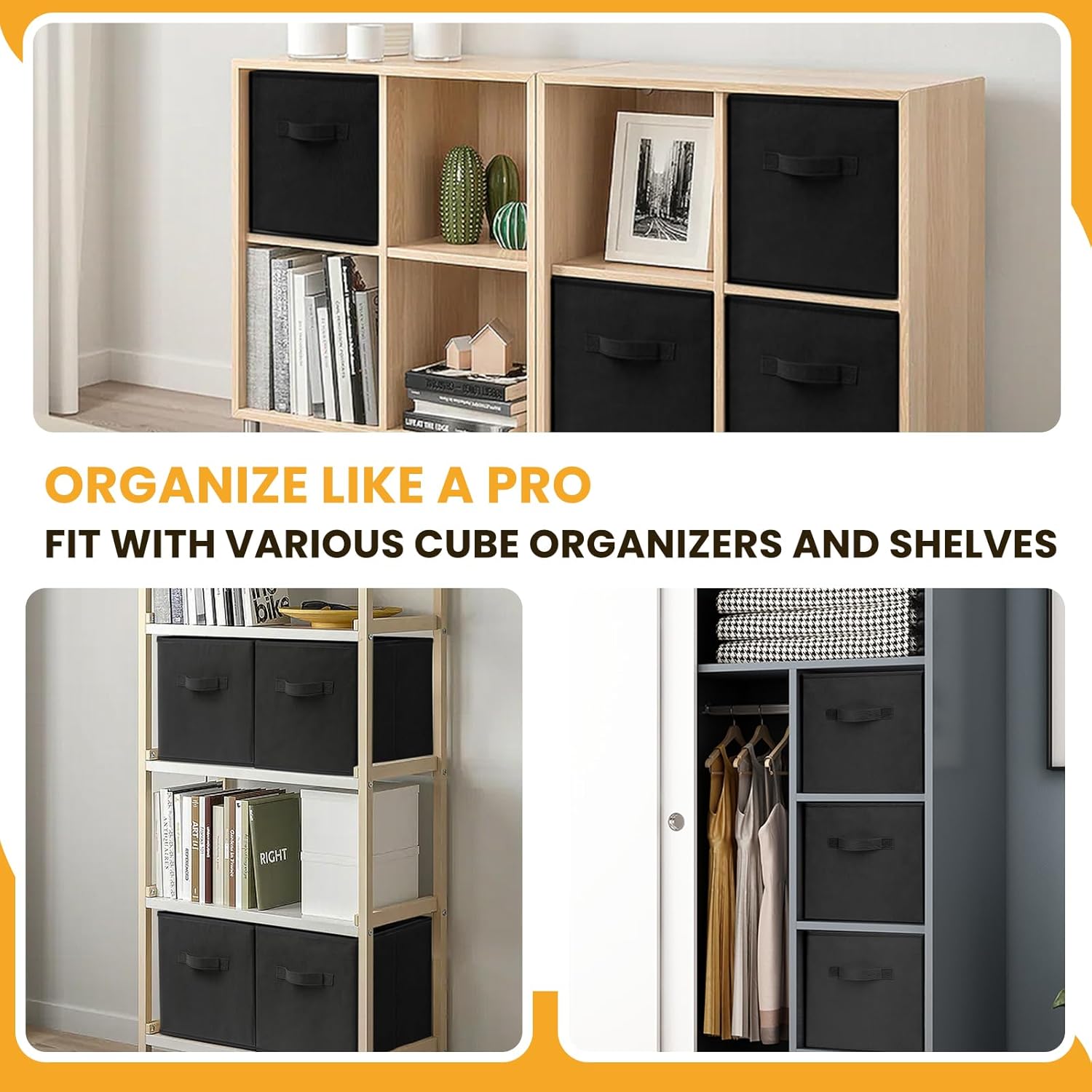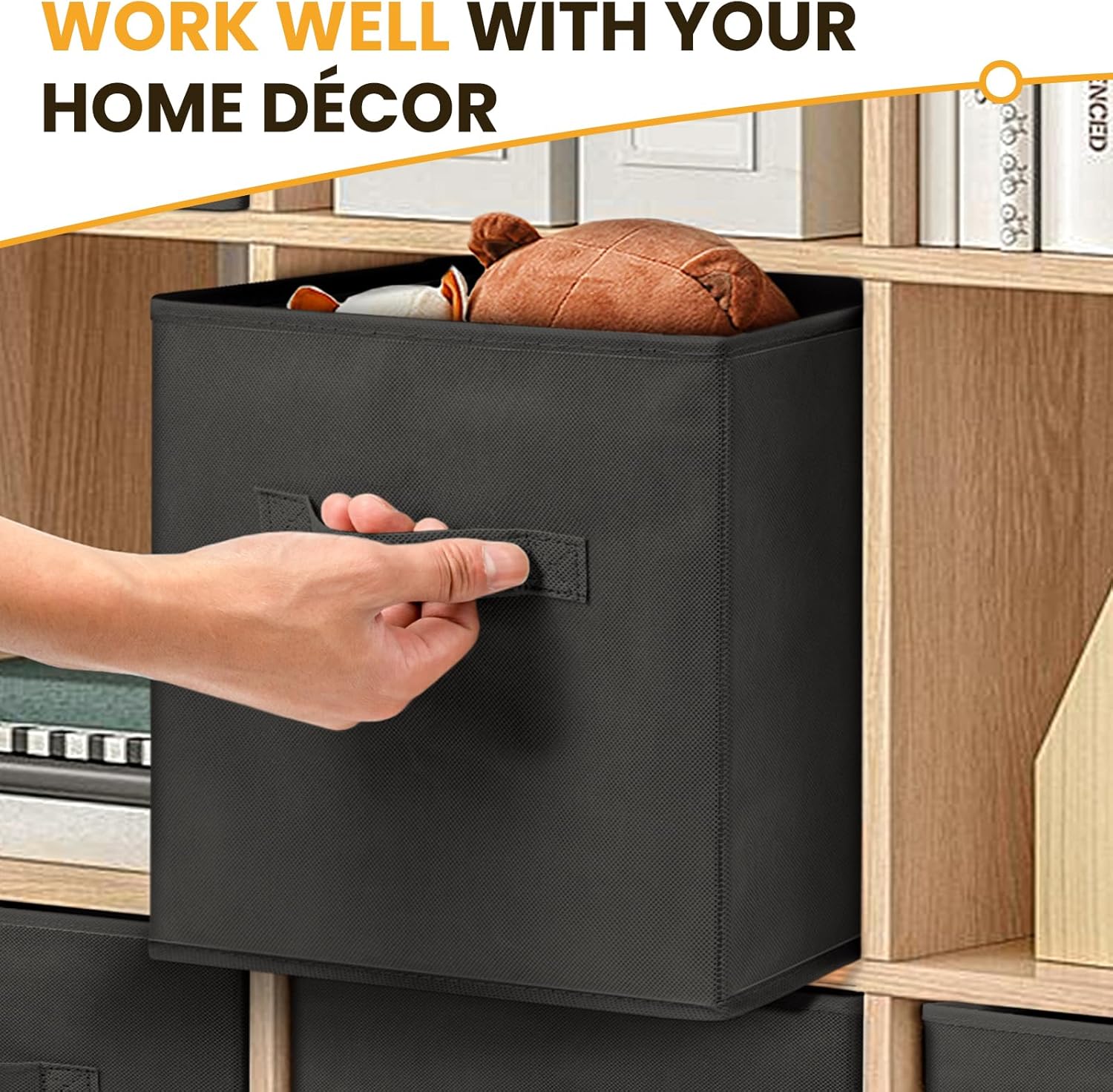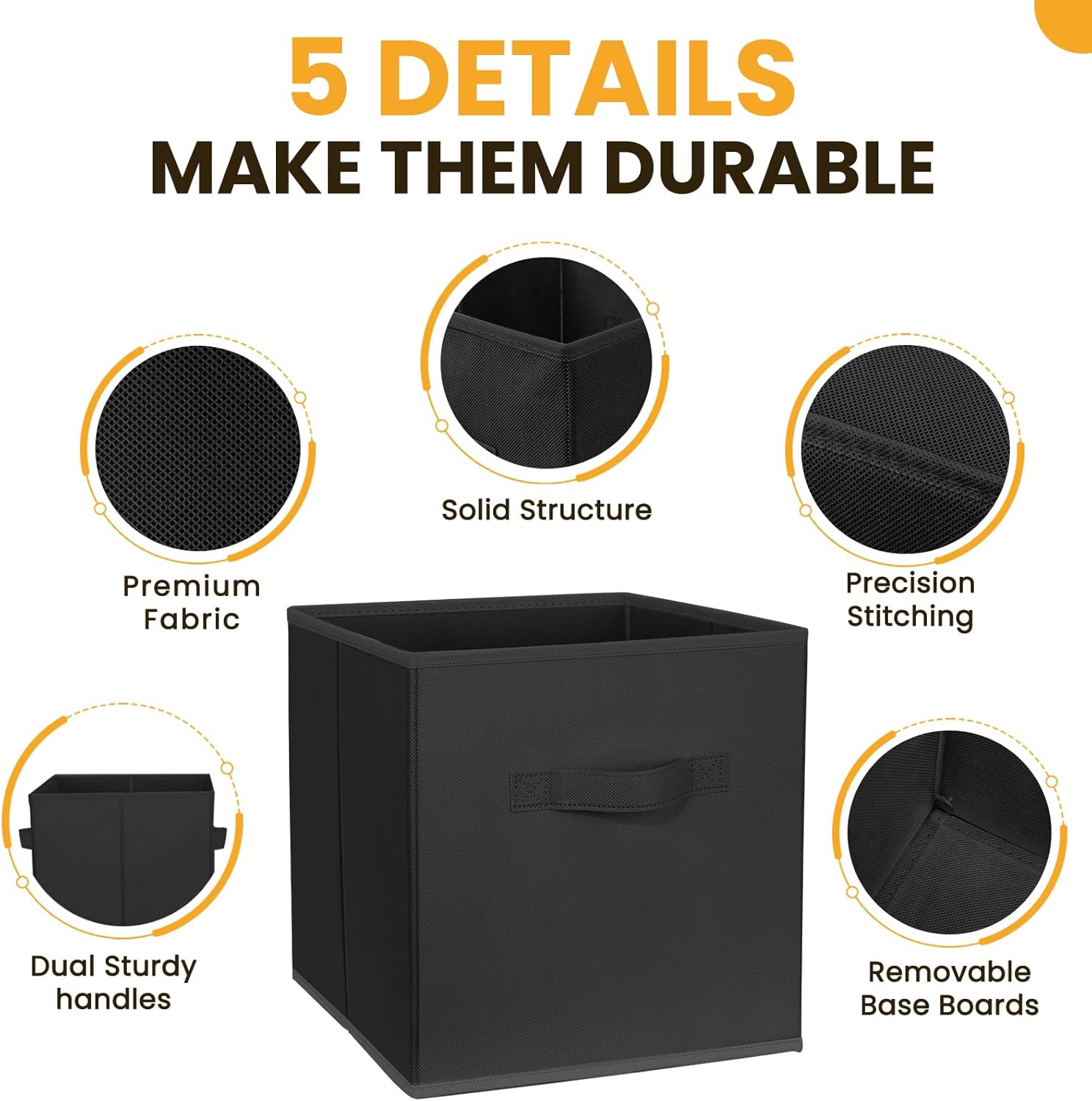 - 【PREMIUM QUALITY】Our sturdy bins for organization will indeed surprise you with their quality, durability, and style. The non-woven fabric and thick boards make these storage boxes long-lasting for years use, and the reinforced handles on both sides ensure quick and easy carrying.