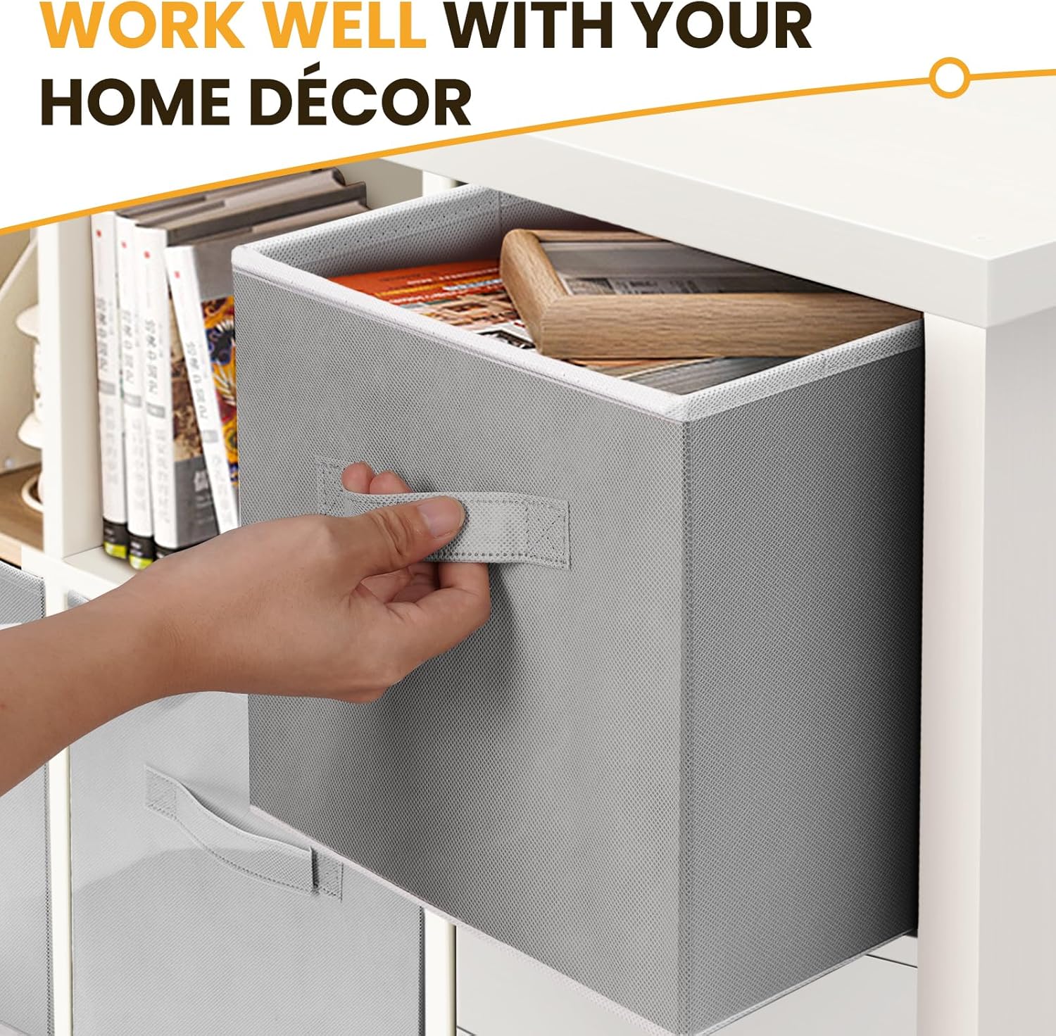 - 【PREMIUM QUALITY】Our sturdy bins for organization will indeed surprise you with their quality, durability, and style. The non-woven fabric and thick boards make these storage boxes long-lasting for years use, and the reinforced handles on both sides ensure quick and easy carrying.