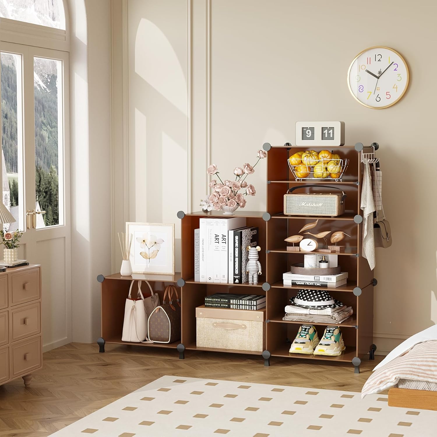 AWTATOS Closet Organizer 6 Cube Storage Shelves Portable Closet Clothes Organizers and Storage Stackable Cubby Shelving for Closet Bedroom Living Room Office Cocoa Brown