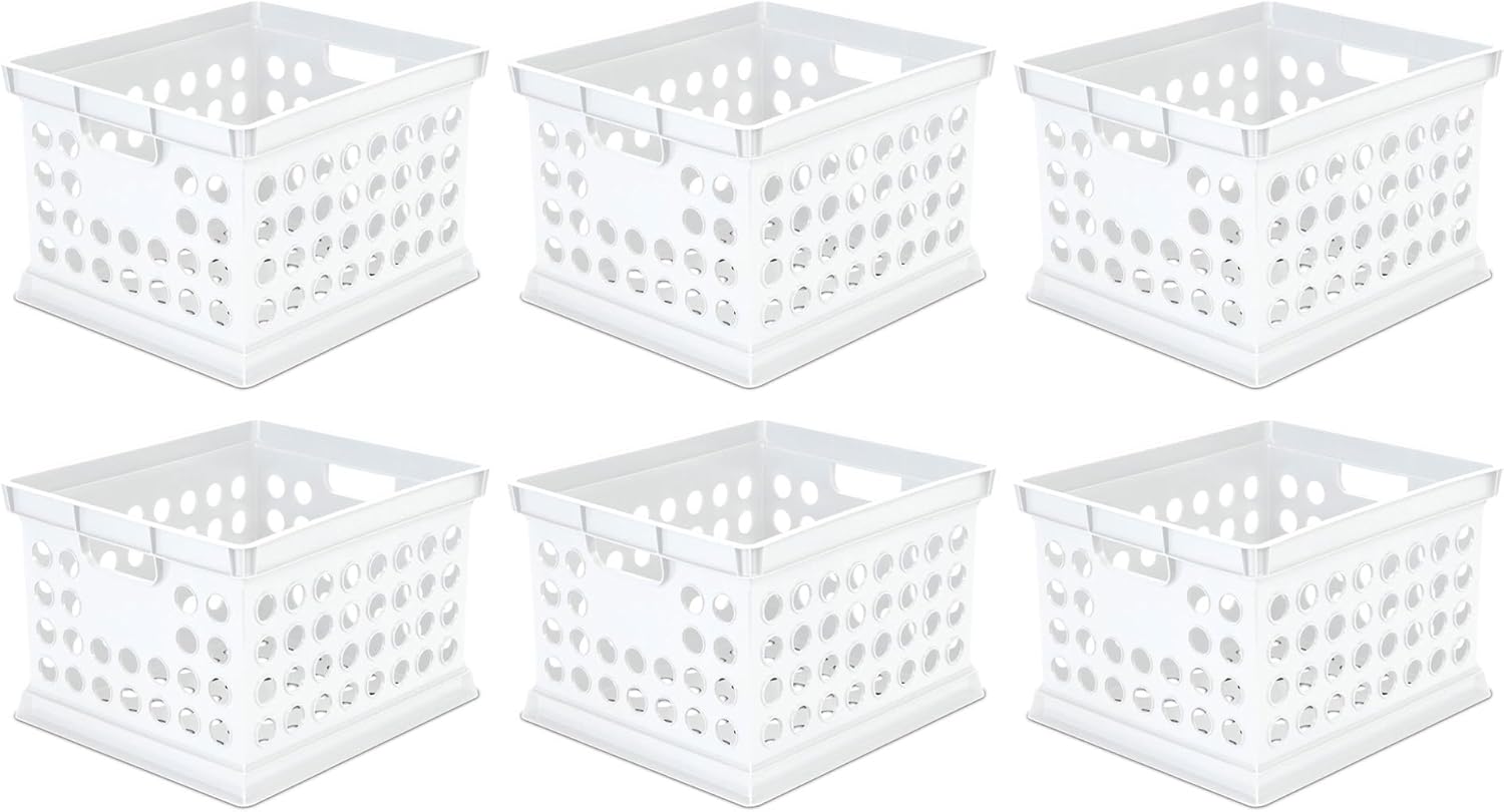 Sterilite Stackable Plastic Storage Crate Bin Organizer File Box with Handles for Home, Office, Dorm, Garage, or Utility Organization, White, 6-Pack