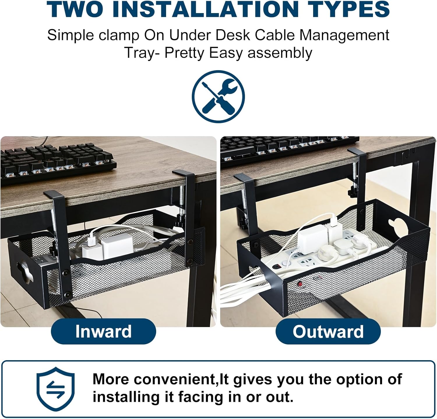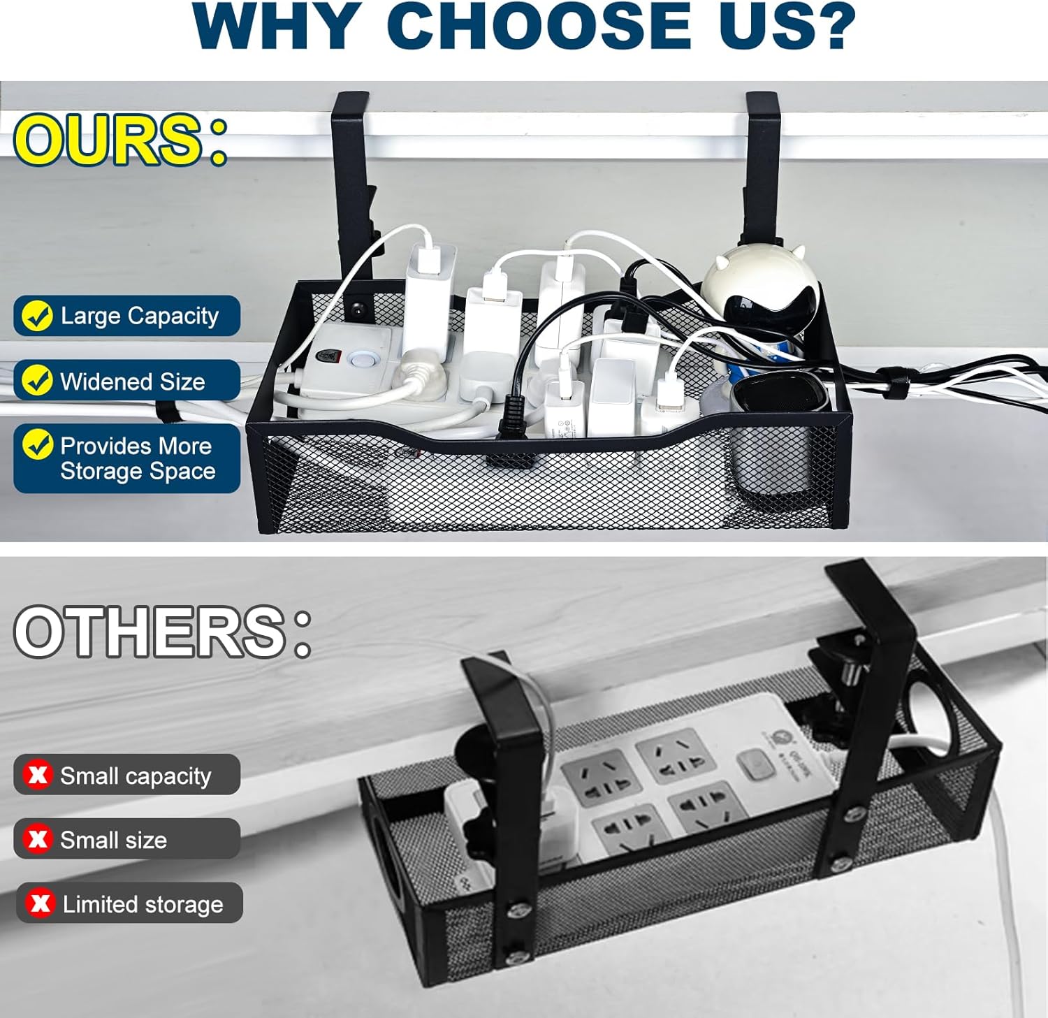 - Spacious & Durable Design-Engineered with heavy-duty steel and a 13.38'' x 7'' extra-large surface, this under-desk tray securely holds power strips, surge protectors,accommodates multiple cords, while the ventilated design prevents overheating. Perfect for home offices, gaming setups, and spaces requiring robust cable management.