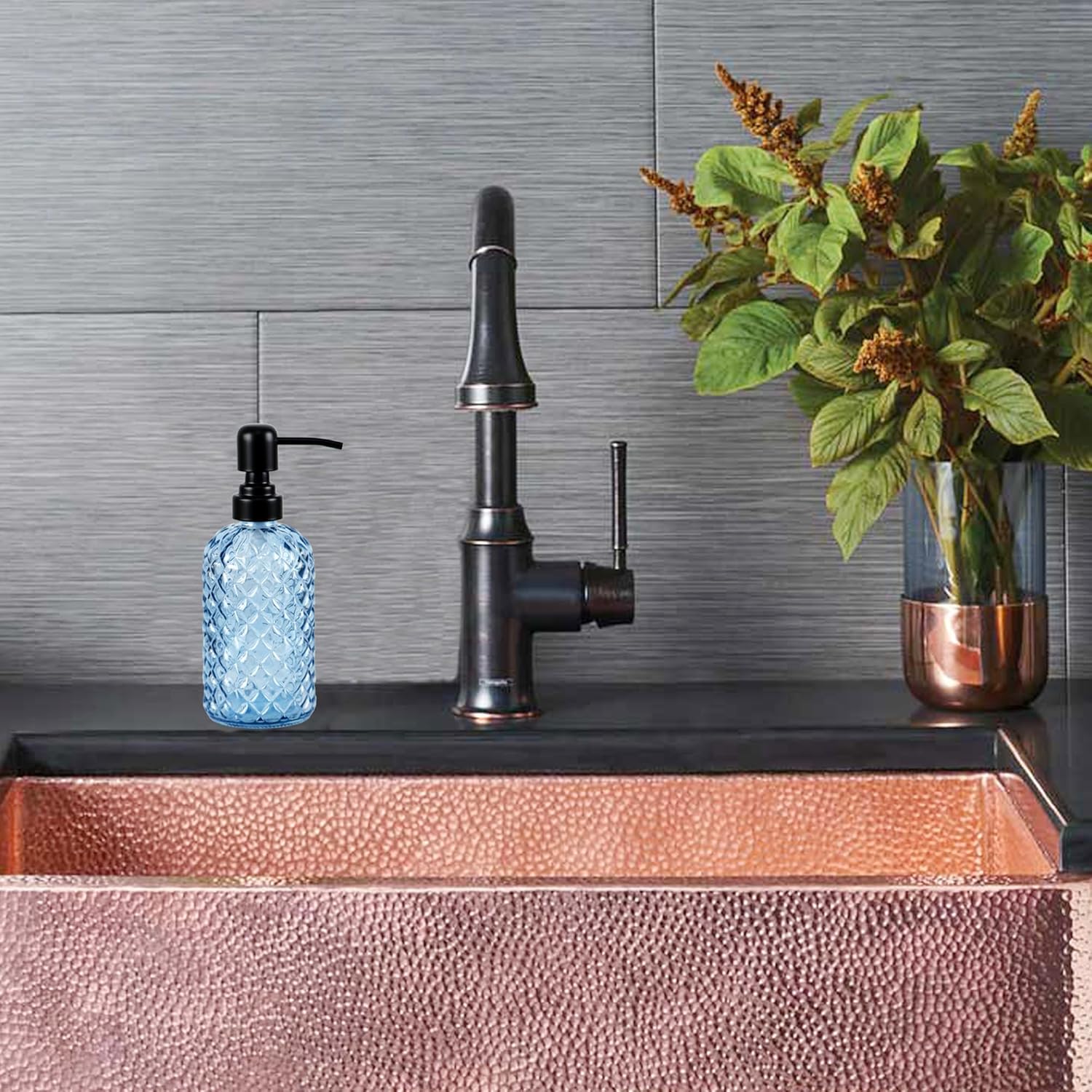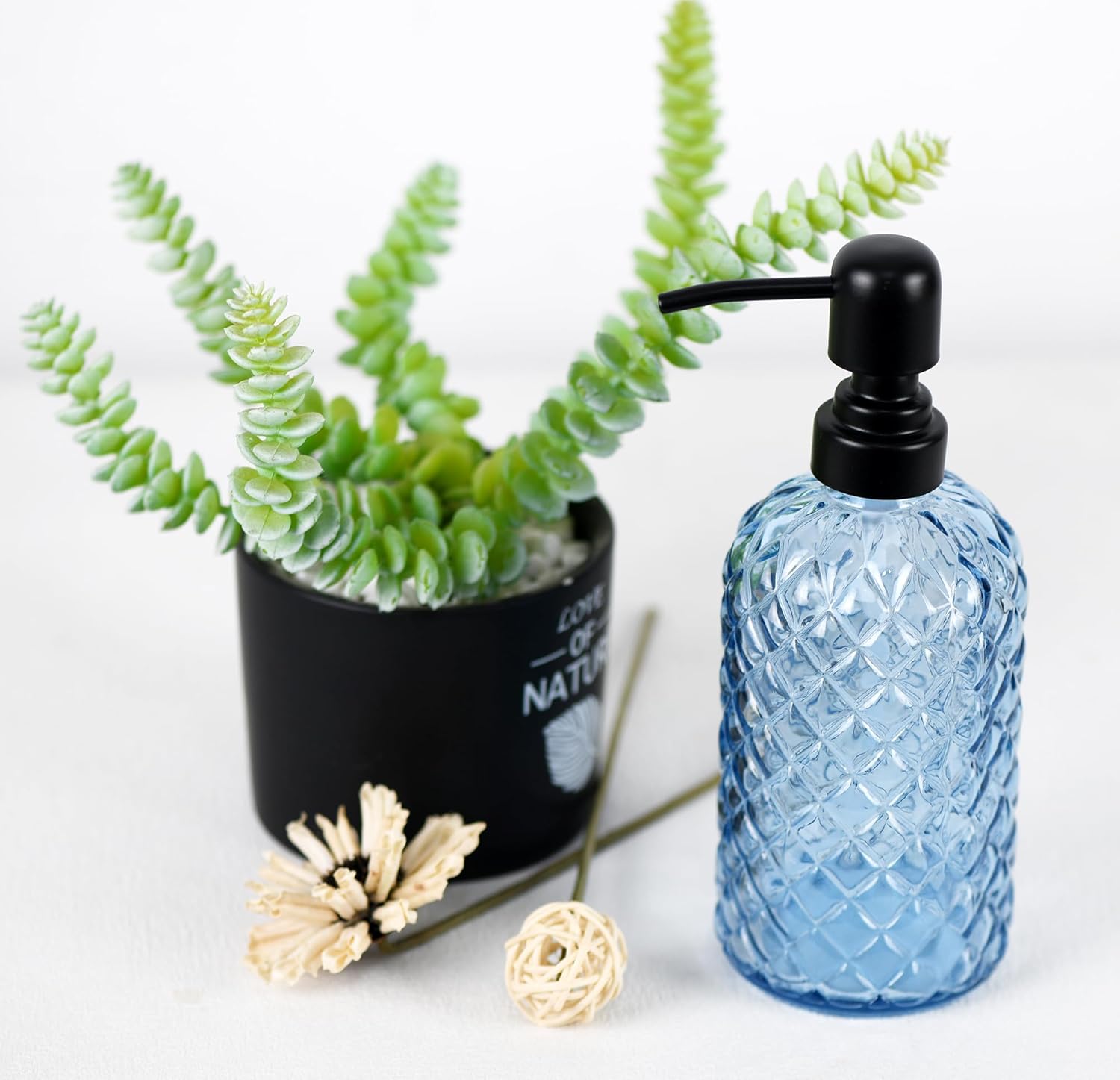 12Oz Glass Soap Dispenser with 304 Black Rustproof Stainless-Steel Pump, Refillable Glass Soap Dispenser for Kitchen, Bathroom, Farmhouse (Blue)