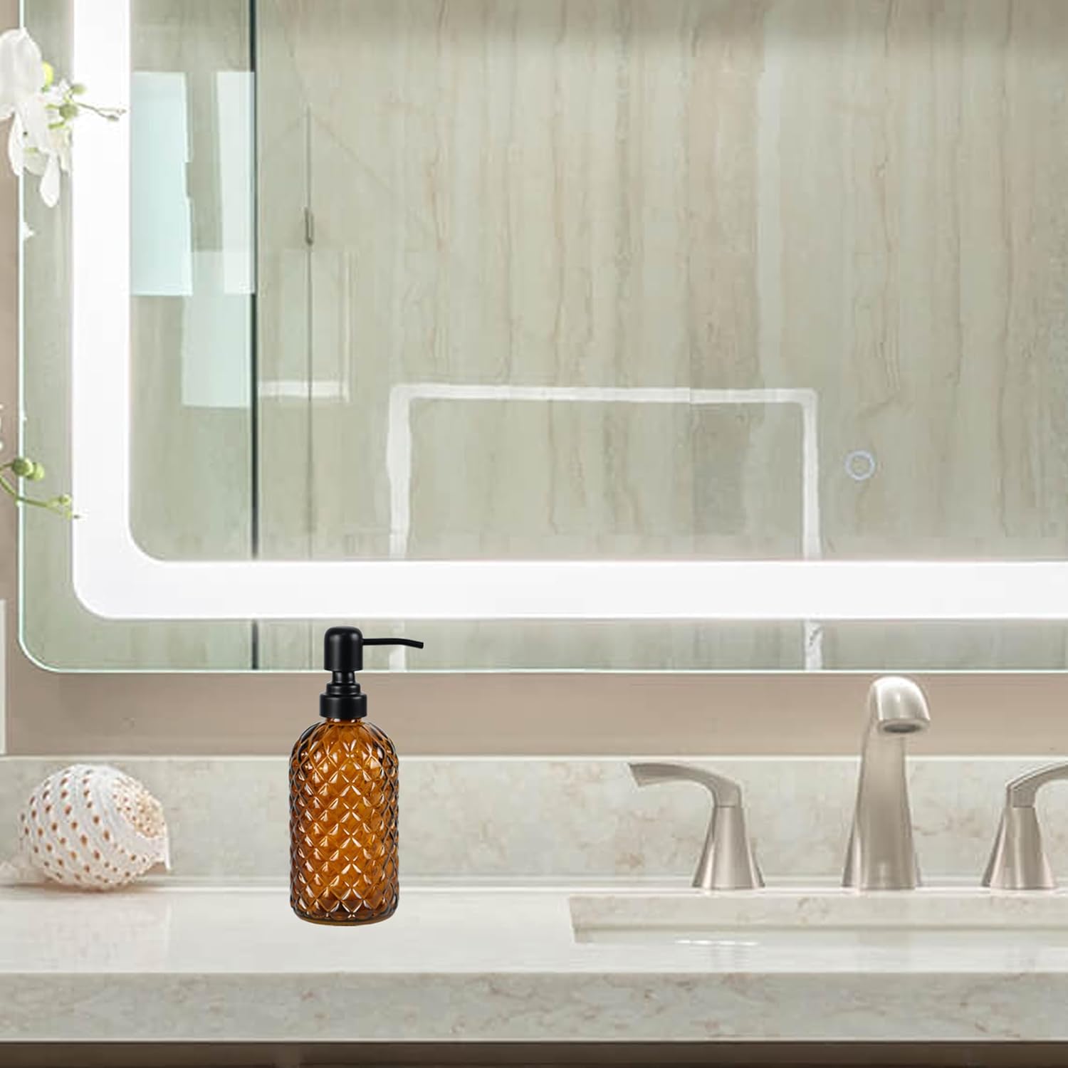 12Oz Glass Soap Dispenser with 304 Black Rustproof Stainless-Steel Pump, Refillable Glass Soap Dispenser for Kitchen, Bathroom, Farmhouse (Amber)