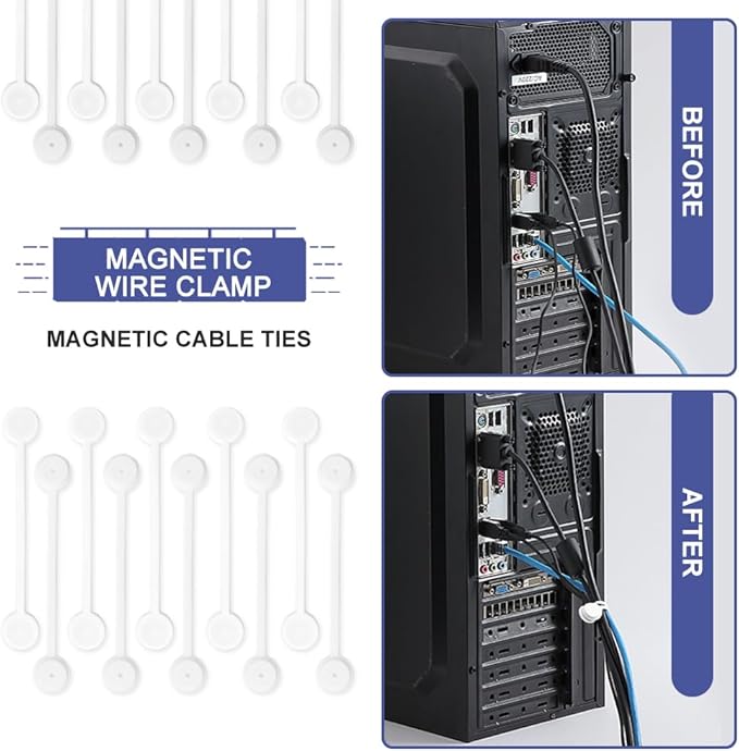 - ◎Organize And Mark — The "over-under" wrapping method, using magnetic cable clips, ensures your cords stay neatly wrapped and without tangles. Comes with 10 piece tags for you to distinguish the different wires.