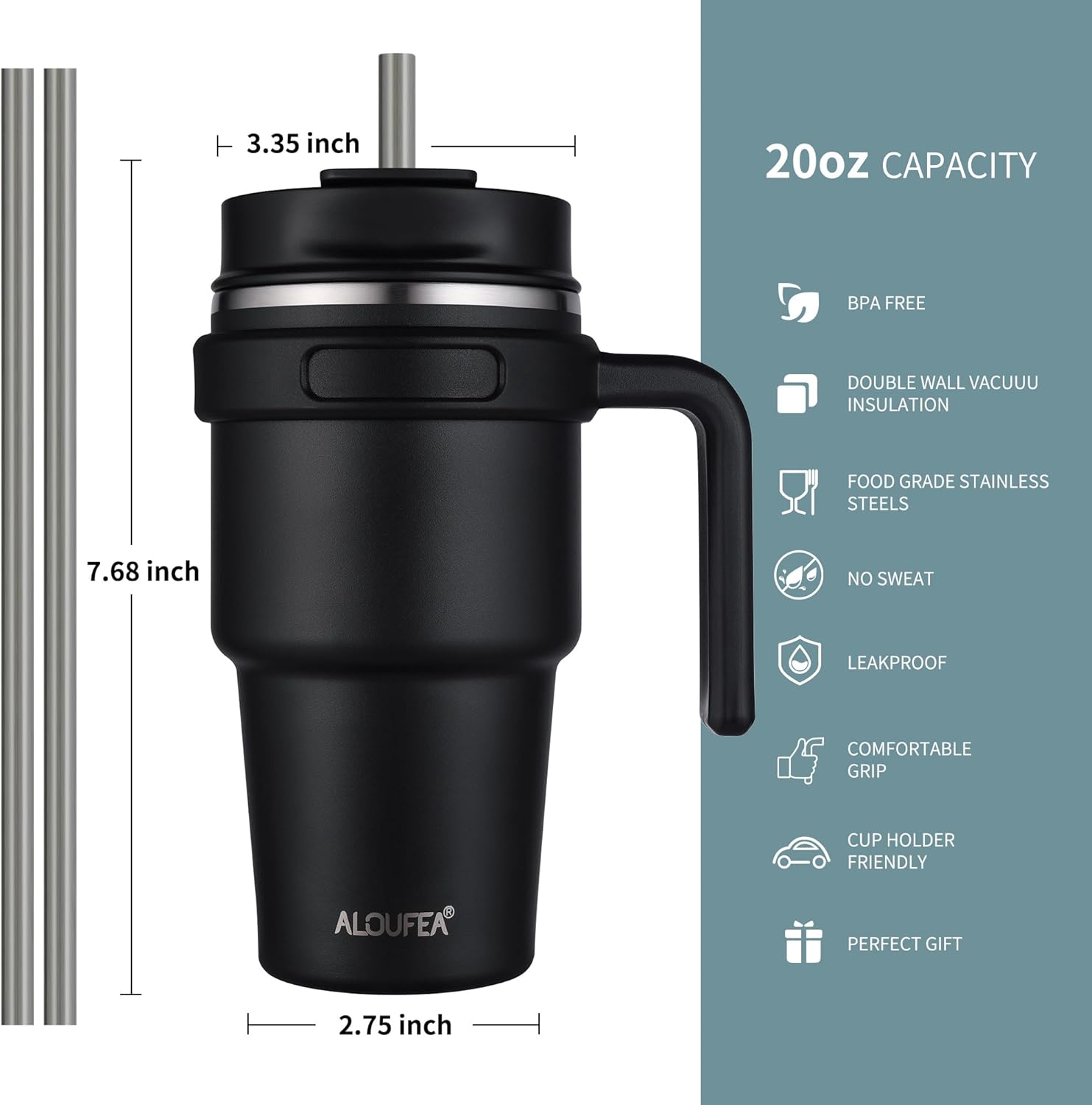 - 20 OZ COFFEE MUG TUMBLER: The water tumbler with handle is made from 18/8 food-grade stainless steel, it is durable, easy to wash, unbreakable, compact and portable. With a unique 2-in-1 sip and straw lid, a lid for every drinking need