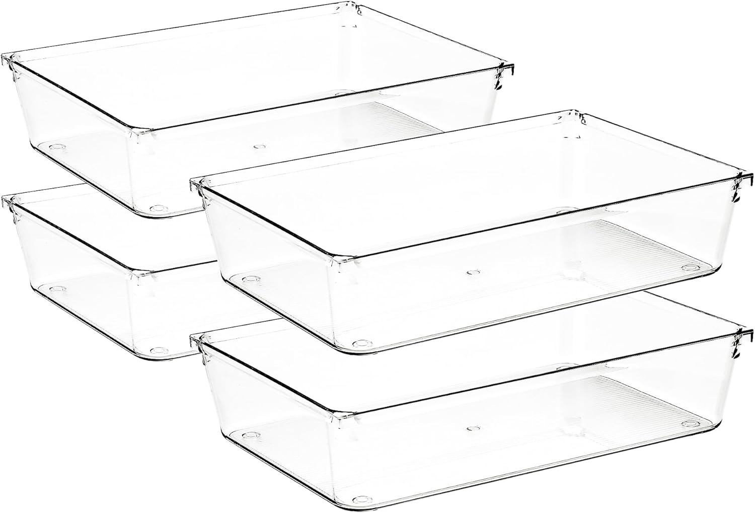 4 Pack Drawer Organizer - 6" X 9" Clear Acrylic Storage Bins with Non-Slip Pads, Versatile Desk Tray for Makeup, Jewelry, Kitchen, Bathroom, and Office Organization