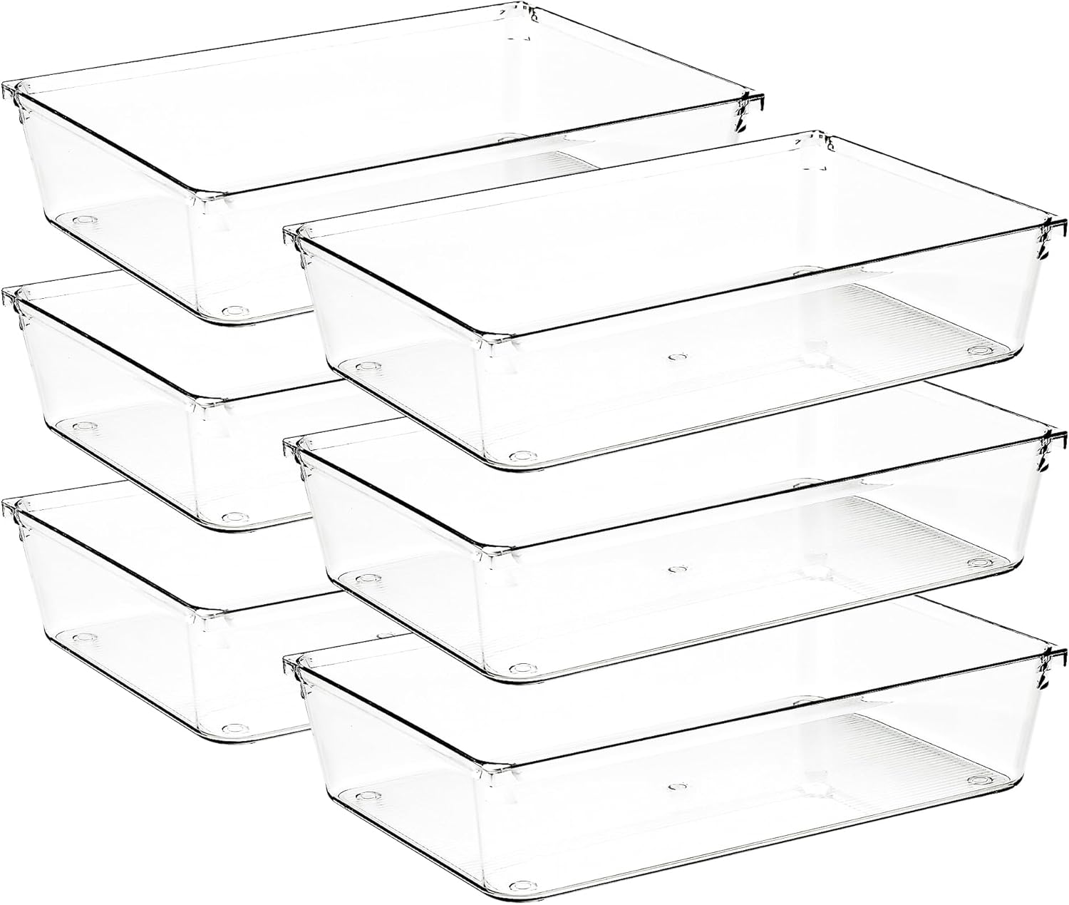 6 Pack Drawer Organizer - 6" X 9" Clear Acrylic Storage Bins with Non-Slip Pads, Versatile Desk Tray for Makeup, Jewelry, Kitchen, Bathroom, and Office Organization