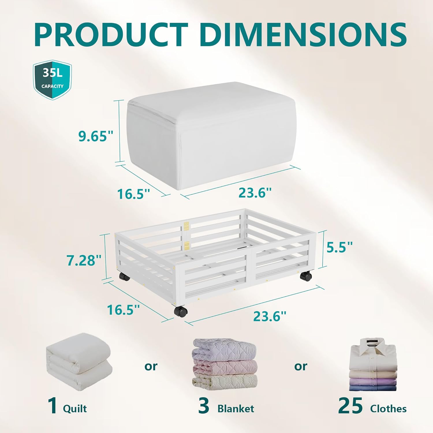- Sturdy and Durable: Our underbed storage units are built to last with high-quality 100% Real Bamboo, ensuring withstand the test of time,boasting 4 rotating wheels with capacity of 120lbs. With 48L large capacity dustproof cover bags are designed to store seasonal clothes, bedding, and household items. It's a versatile storage solution that can be customized based on your needs.