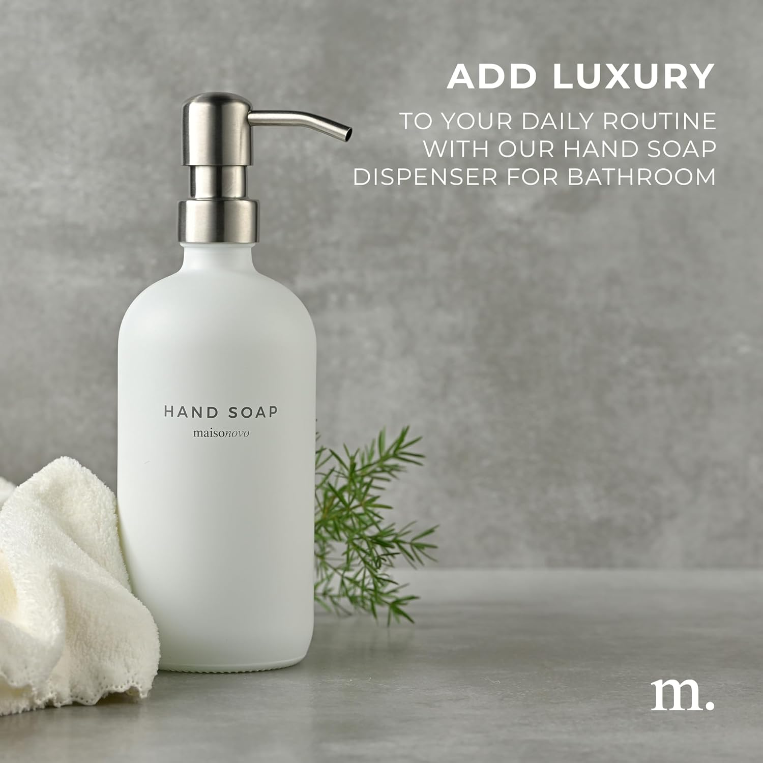 MaisoNovo Soap Dispenser 1-Piece Set | 16.9oz White Bottles with Silver Stainless Steel Pump