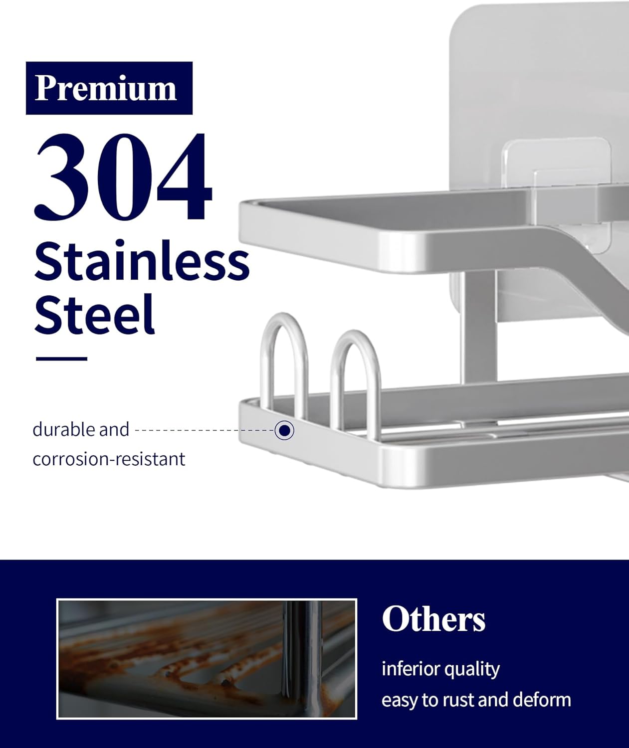 Kitsure Shower Caddy Extra Large - Adhesive Shower Organizer, Stainless Steel Shelf for Inside Shower, No Drill Bathroom Organizers and Storage, Home Decor Accessories, 2 Pack,Sliver