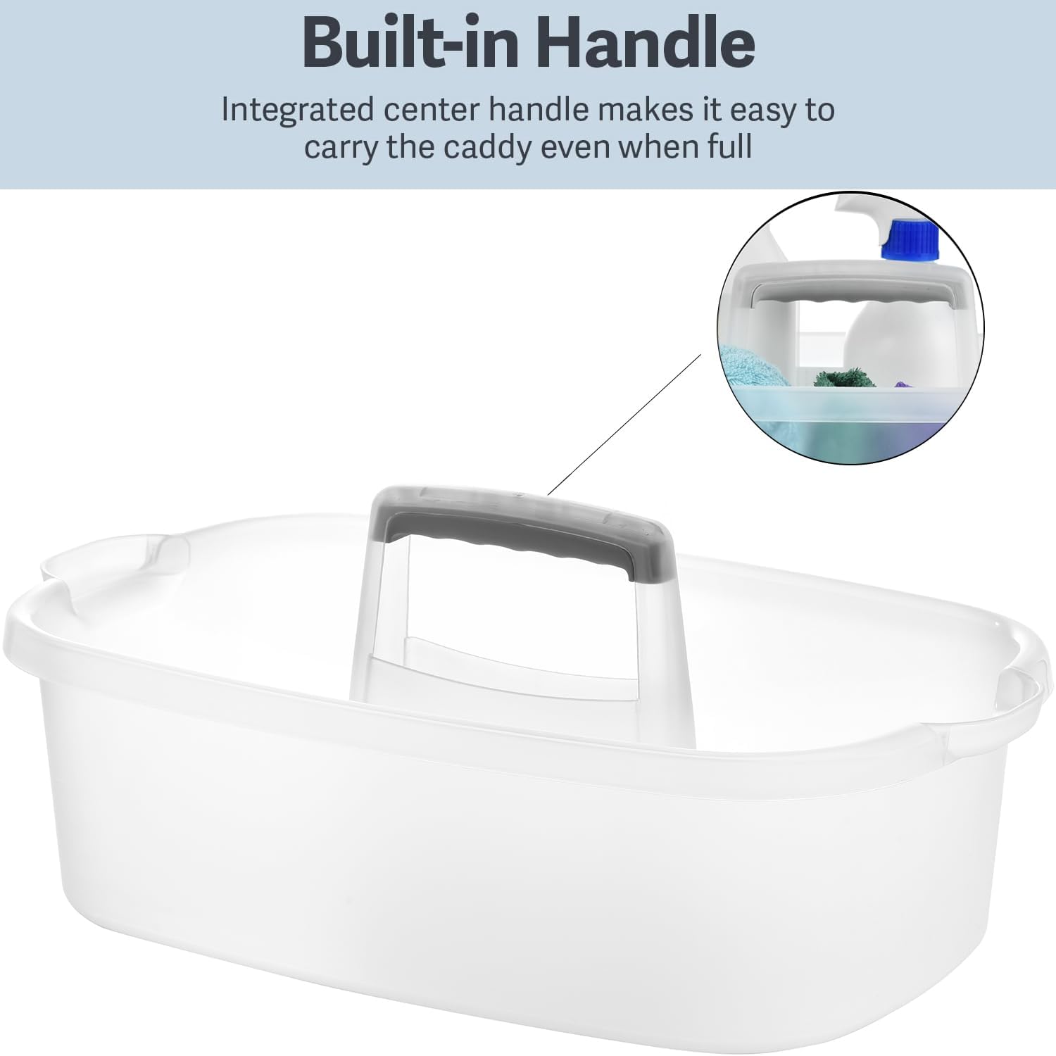 Haundry Large Cleaning Caddy with Handle, Cleaning Tool Storage Basket Organizer, Sturdy Pail Bucket Organizer, Household Bucket for Cleaning Supplies - Clear