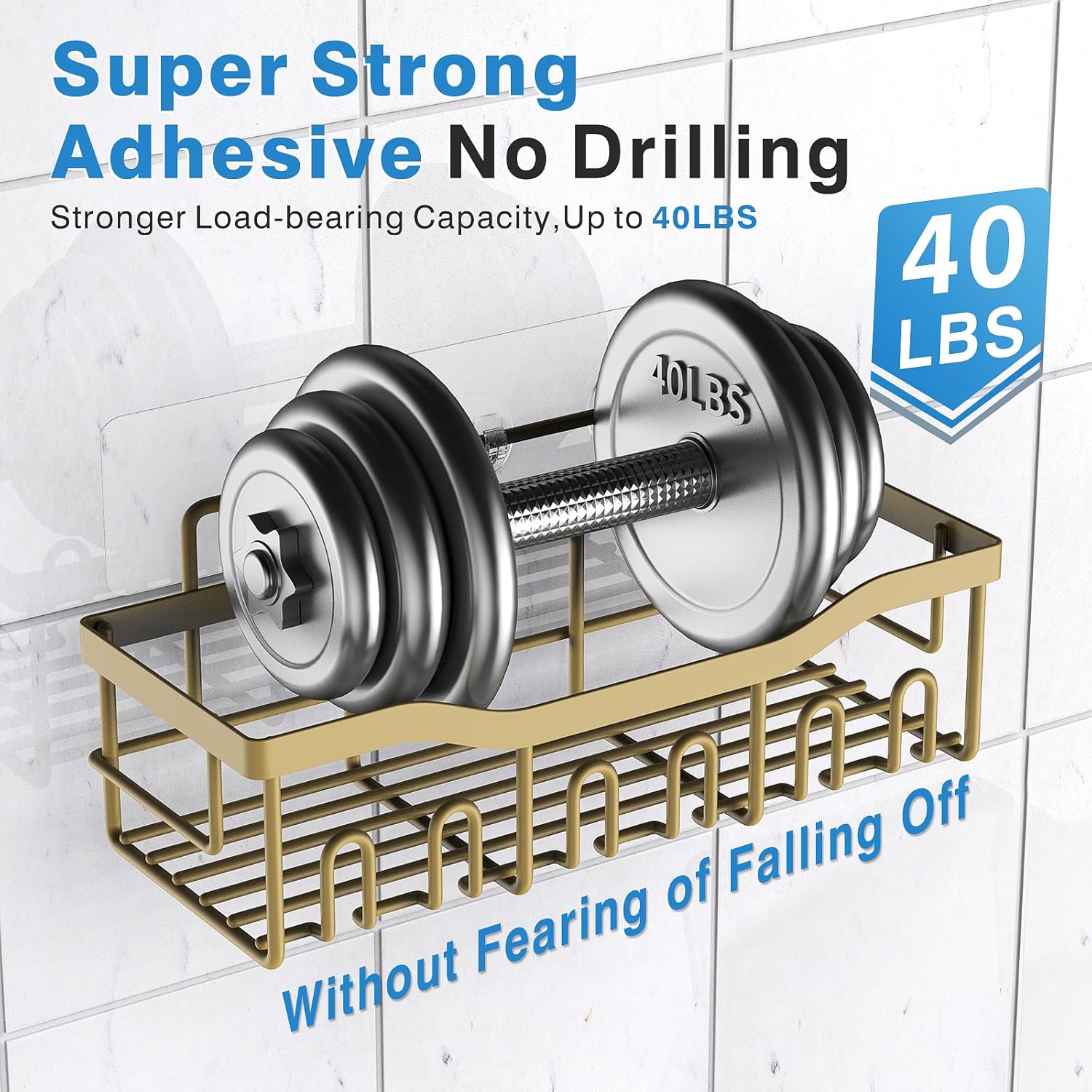 - 40-Pound Bearing Weight,Reliable and Stable:The newest upgraded transparent traceless adhesives give ultra-strong reliability with up to 40 lbs of bearing weight, which is tested by professional institutions. Keep the tins and bottles in the bathroom shower caddy, and make them easy to fetch and use. Never worry about falling issues after proper installation.