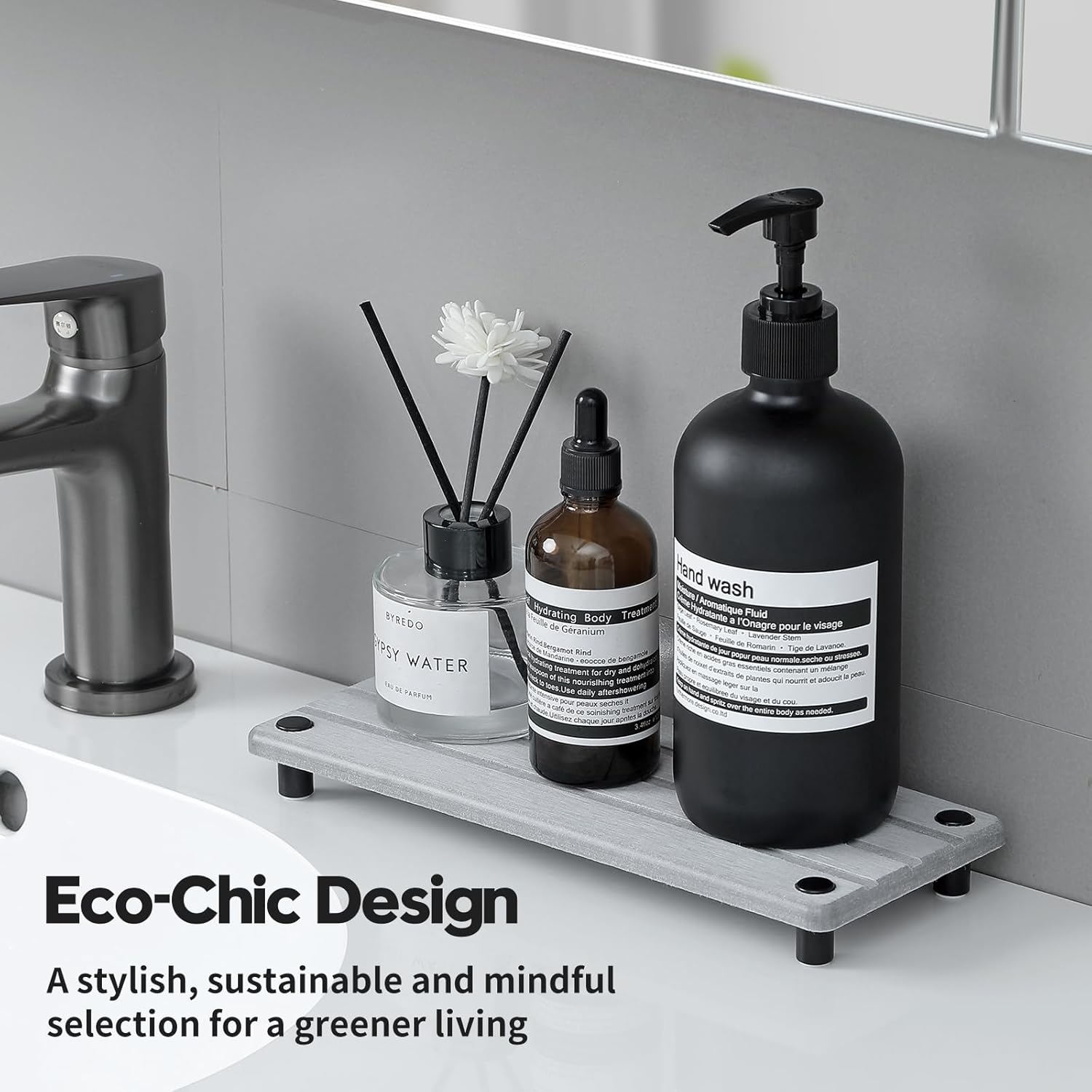 - 【Eco-Chic Design】A minimal and sophisticated look that matches seamlessly with any decor. Modern design with three simple straight lines, perfect for your kitchen or bathroom. You can put it on the table or by the sink countertop.