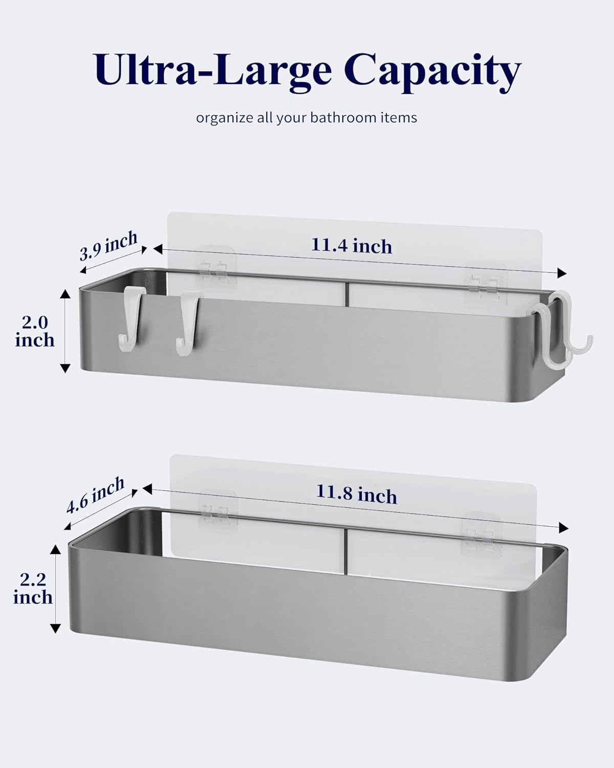 - LARGE CAPACITY: The two Kitsure Medium shower caddies measure 11.8" and 11.4" respectively. They are large enough to store all your bathroom items, such as body wash, shampoo, conditioner, and facial cleanser. The heightened guard rail can effectively prevent your items from accidentally dropping down.