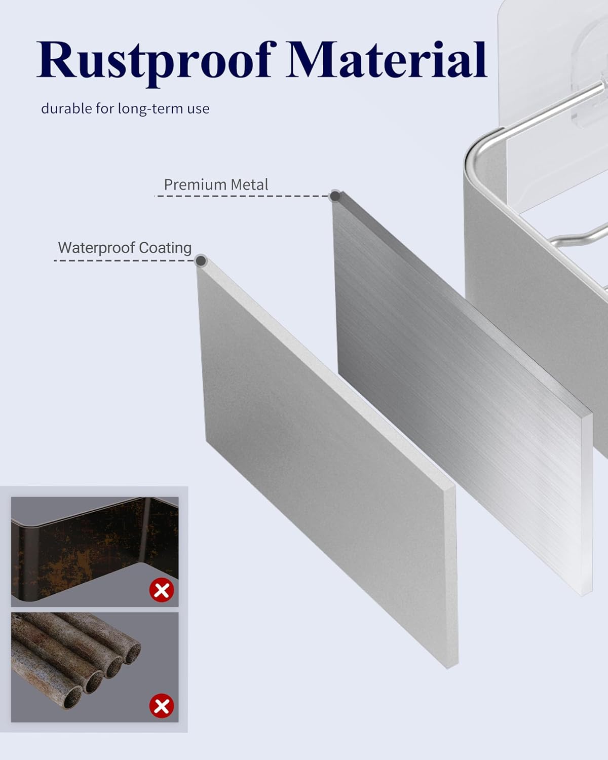 - PREMIUM RUSTPROOF MATERIAL: Kitsure shower racks for inside shower feature Main material: metal(The hook is made of plastic)and thickened coating, which is rustproof, waterproof, scratch-free, and durable for long-term use. In addition, with a smooth and easy-to-clean surface, you can just rinse the shower caddy and leave it to air dry.Note:due to the characteristics of metal products, the surface color may be different when photographed under different lighting.