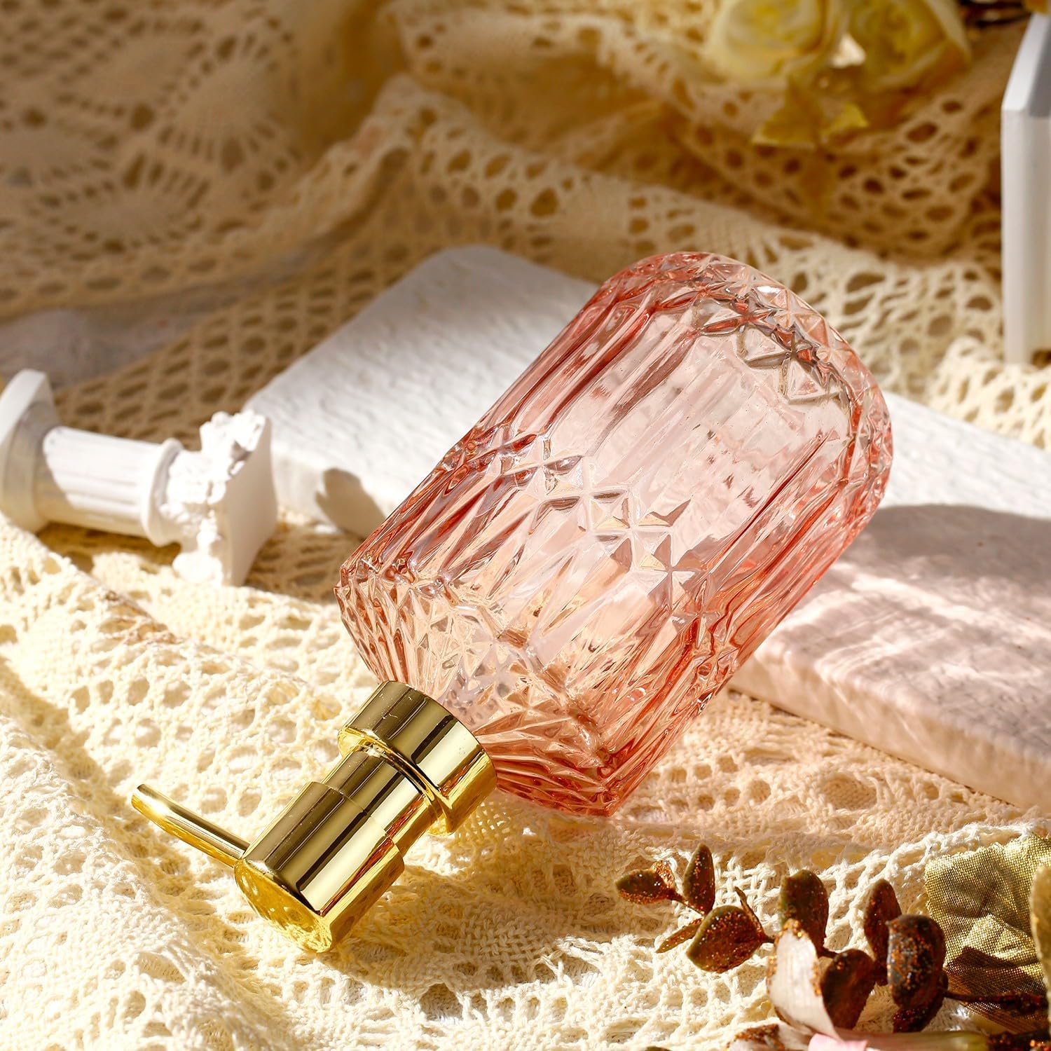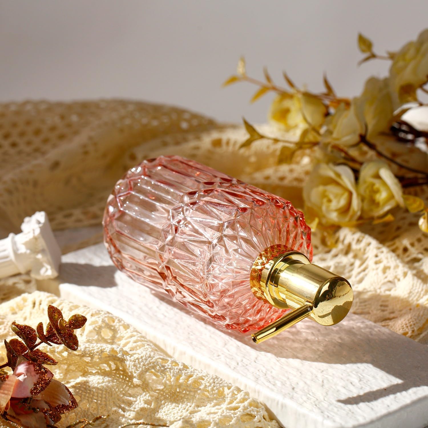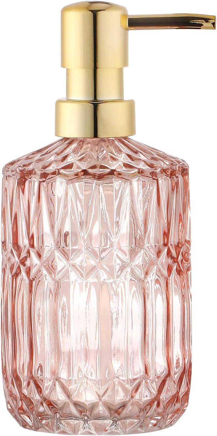 - Cut-Glass Dispenser: Stylish glass soap dispenser with pattern, perfect for soap, lotion, hand soap, dish soap, etc.