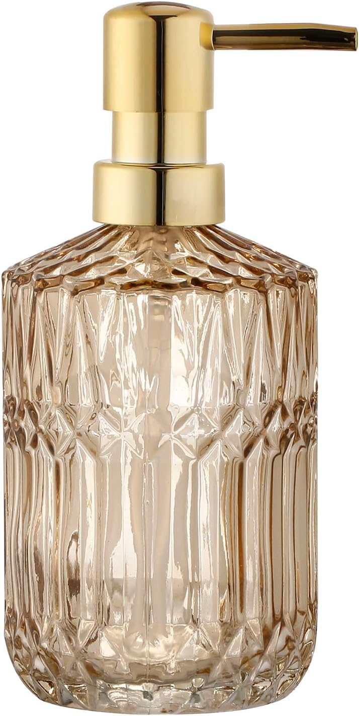 - Cut-Glass Dispenser: Stylish glass soap dispenser with pattern, perfect for soap, lotion, hand soap, dish soap, etc.
