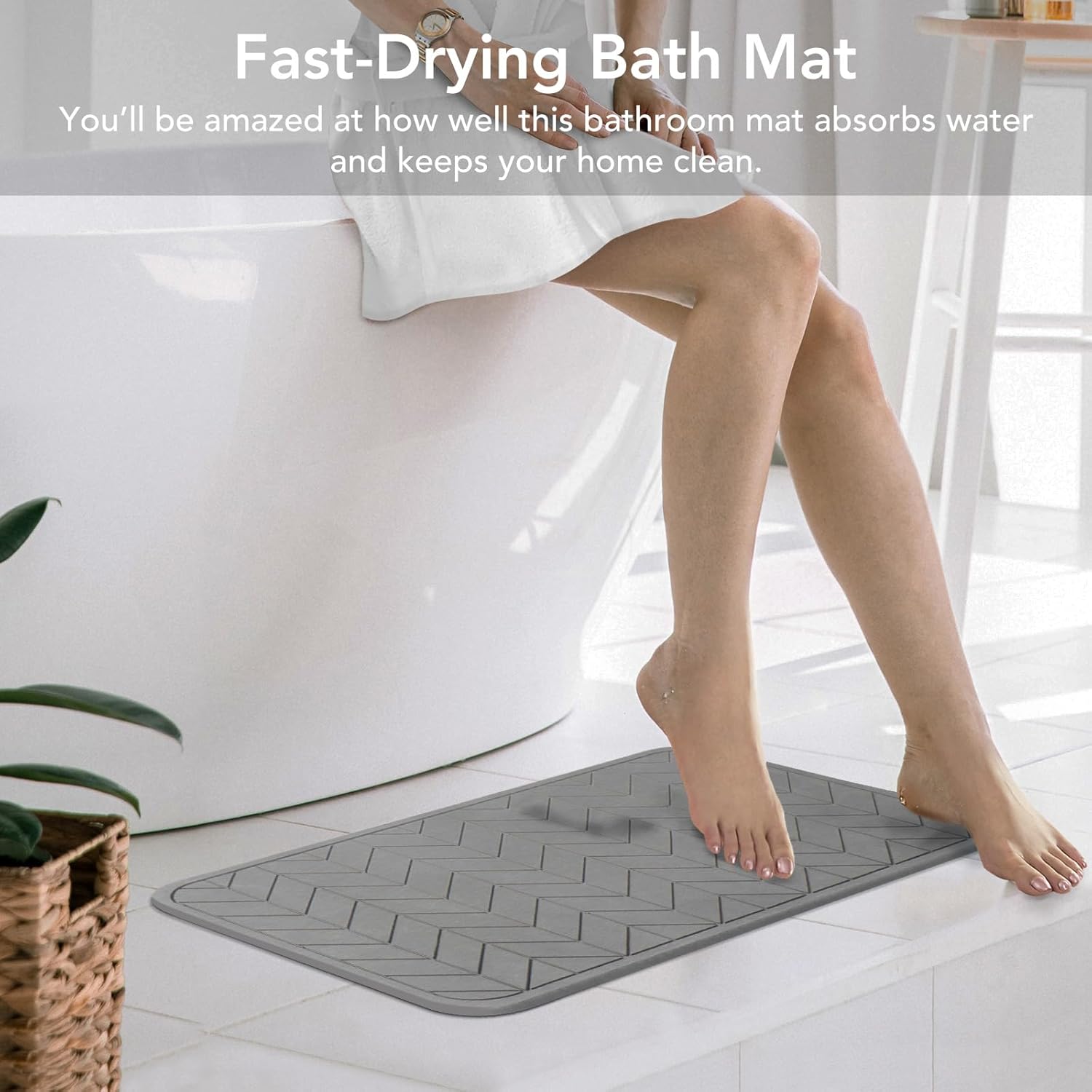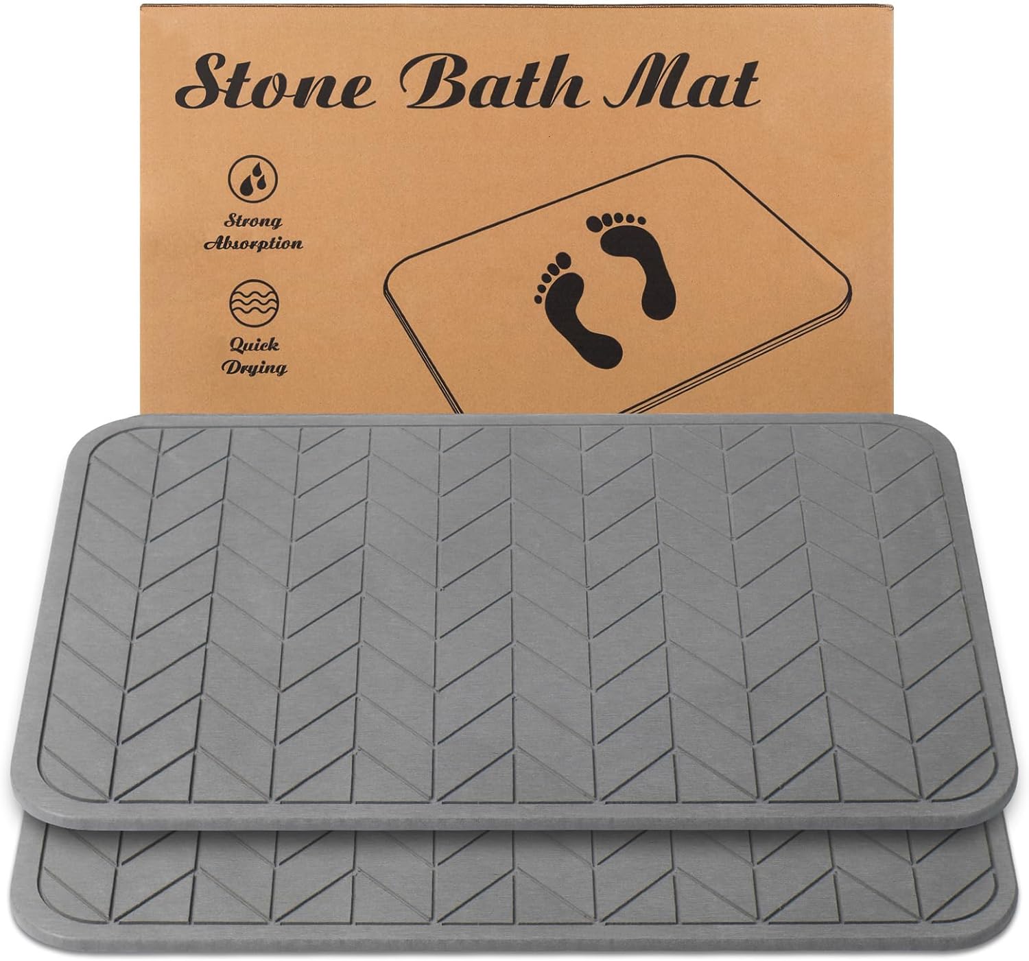 Stone Bath Mat, Diatomaceous Earth Shower Mat, Non-Slip Super Absorbent Quick Drying Bathroom Floor Mat, 2 Pack, Grey