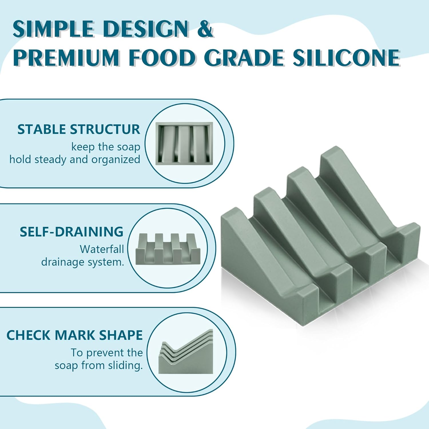 - Premium Silicone Construction: Our silicone soap dishes are made from high-quality, flexible silicone, ensuring durability and long-lasting use.